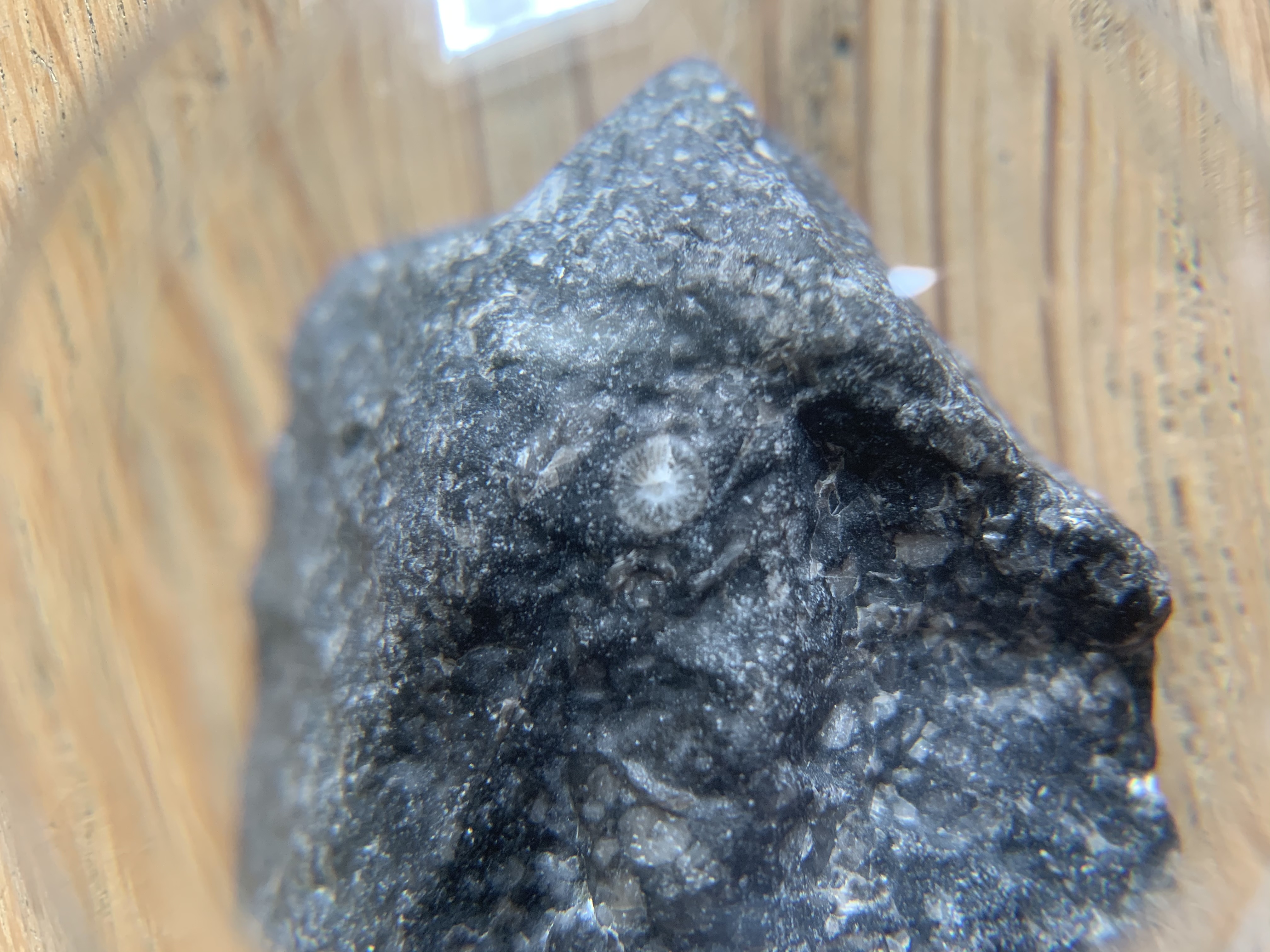 Hallo allemaal steentje gevonden op de Banjaard, zitten er nu kleine fossieletjes in of zijn het kristal insluitingen?