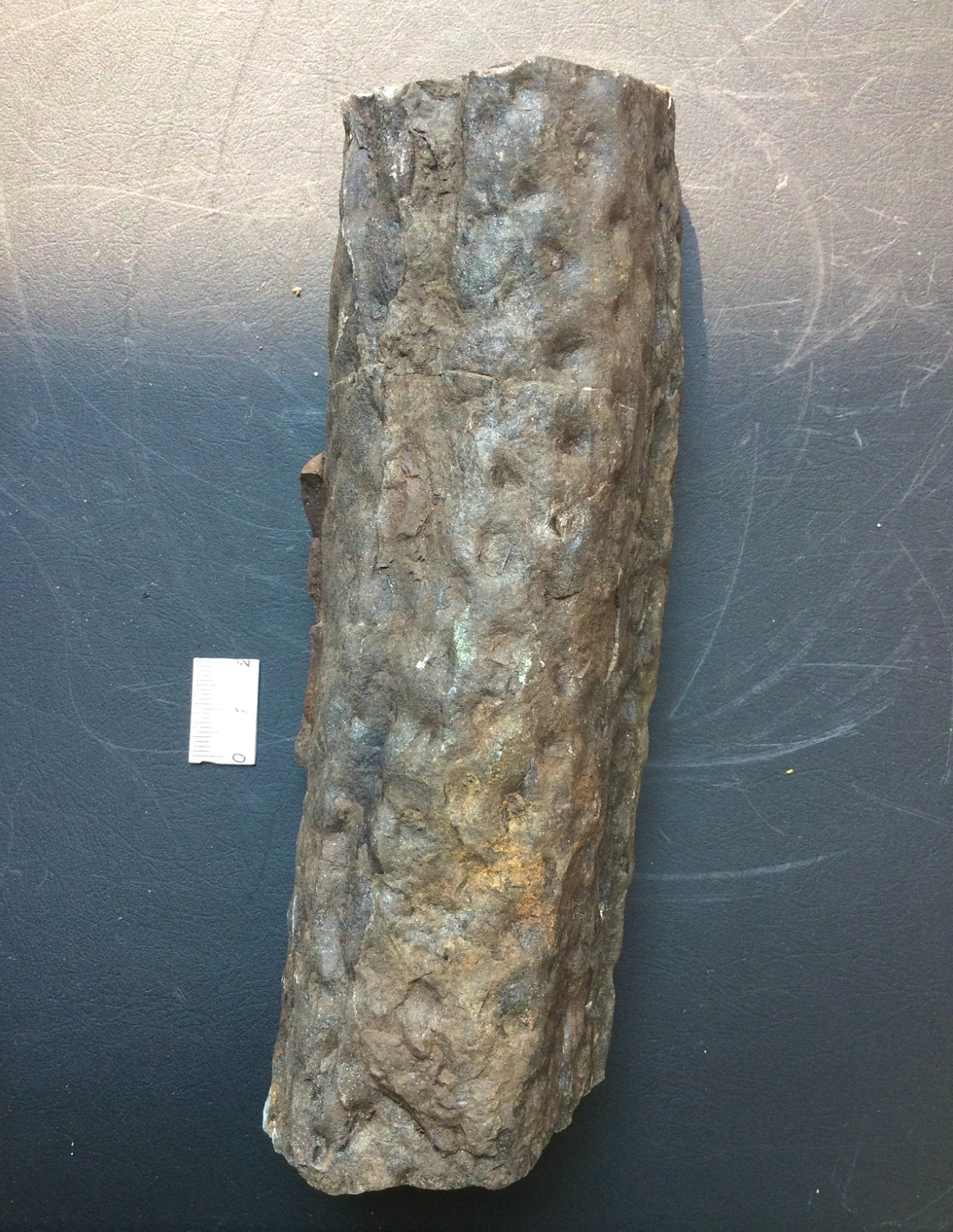 Aan de achterkant zeker Calamites sp., met een knoop waar een zijtak heeft gezeten.