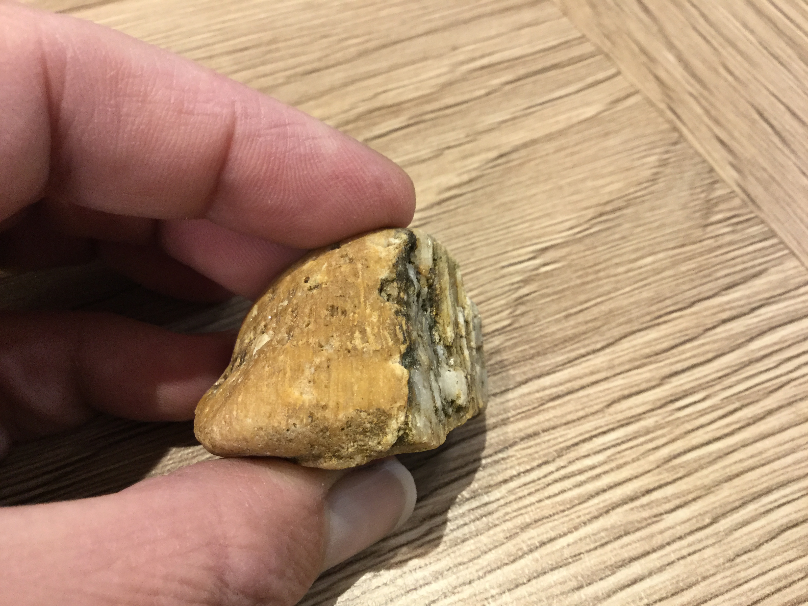 Dit steentje heb ik ook nog gevonden. Is het kwarts, kiezel? Het glanst ook nogal.
