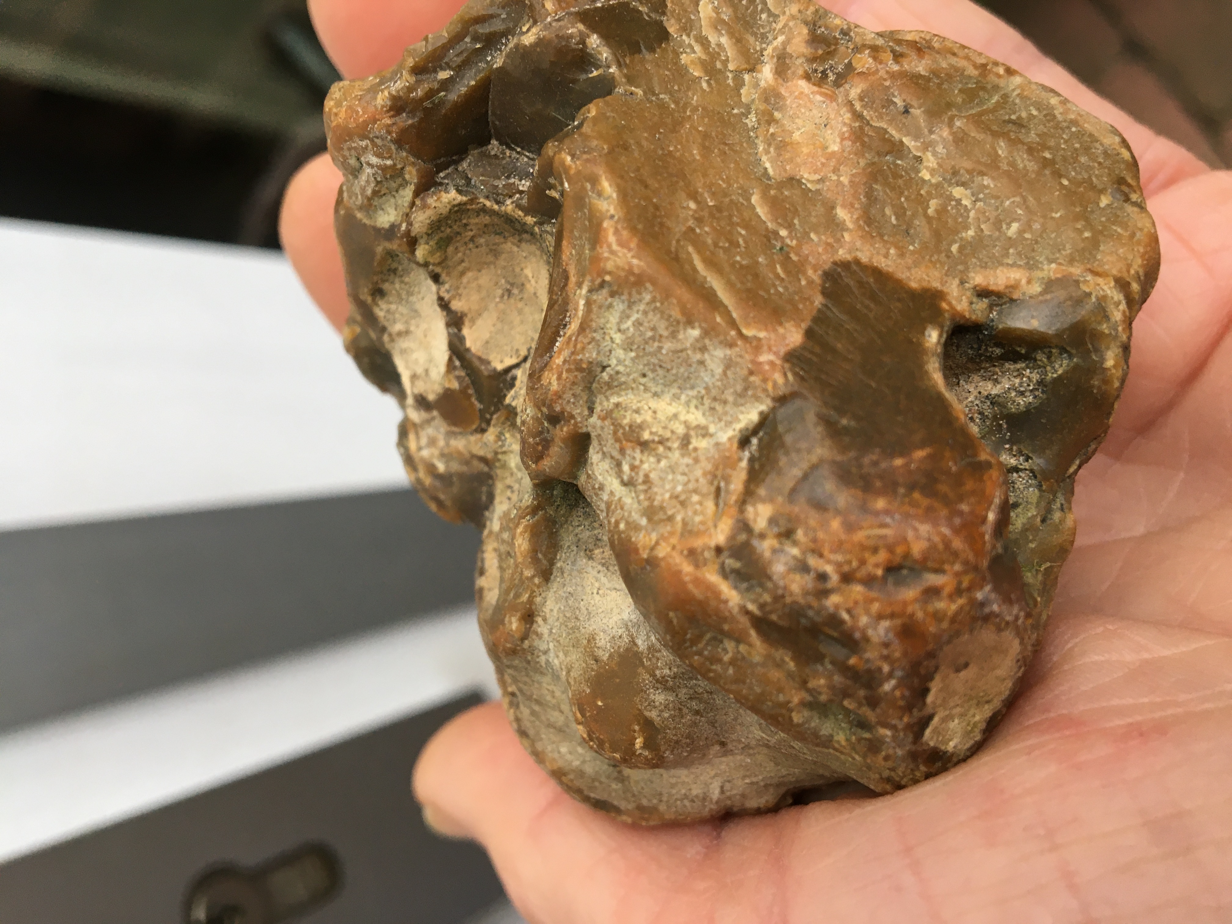 Beste leden, afgelopen weekend viel mn oog op deze fraaie bruine steen/klomp/knol. Wat zou dit zijn? In eetste instantie dacht ik aan vuursteen, maar omdat ik vuursteen nog niet in deze vorm heb gezien twijfel ik. Ik vind hem iig wel heel fraai.
