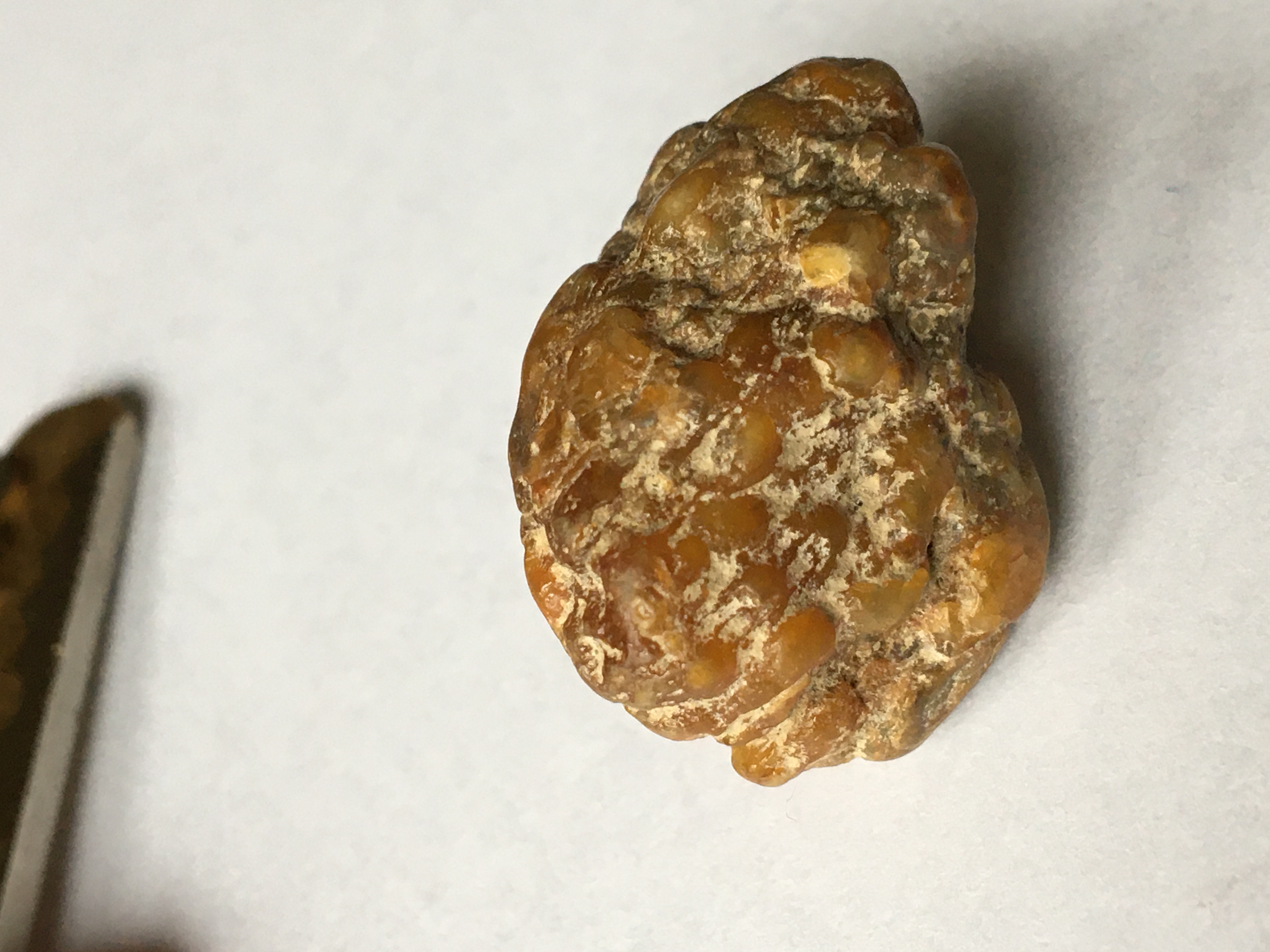 Mogelijk weet een van jullie wat voor soort gesteente dit is? Het is geelbruin en gebobbeld/ bolletjes.