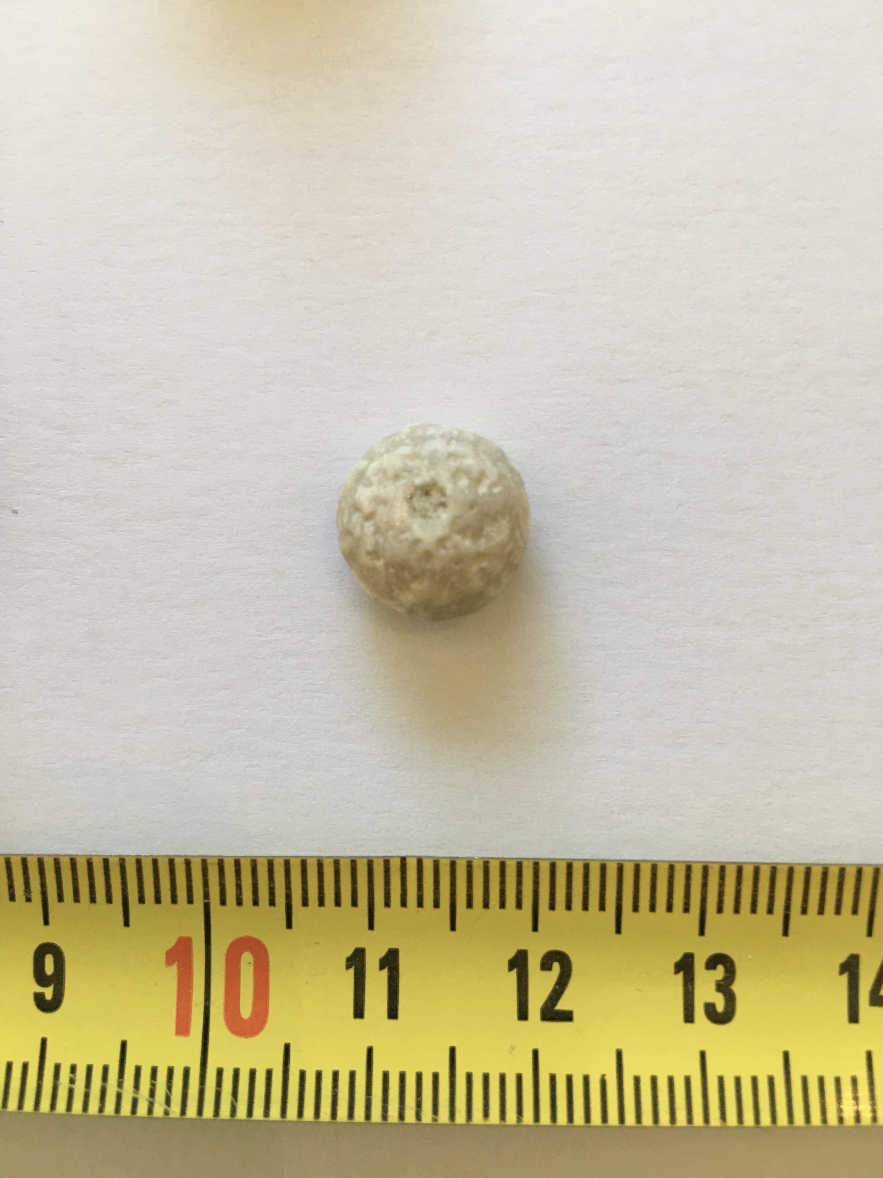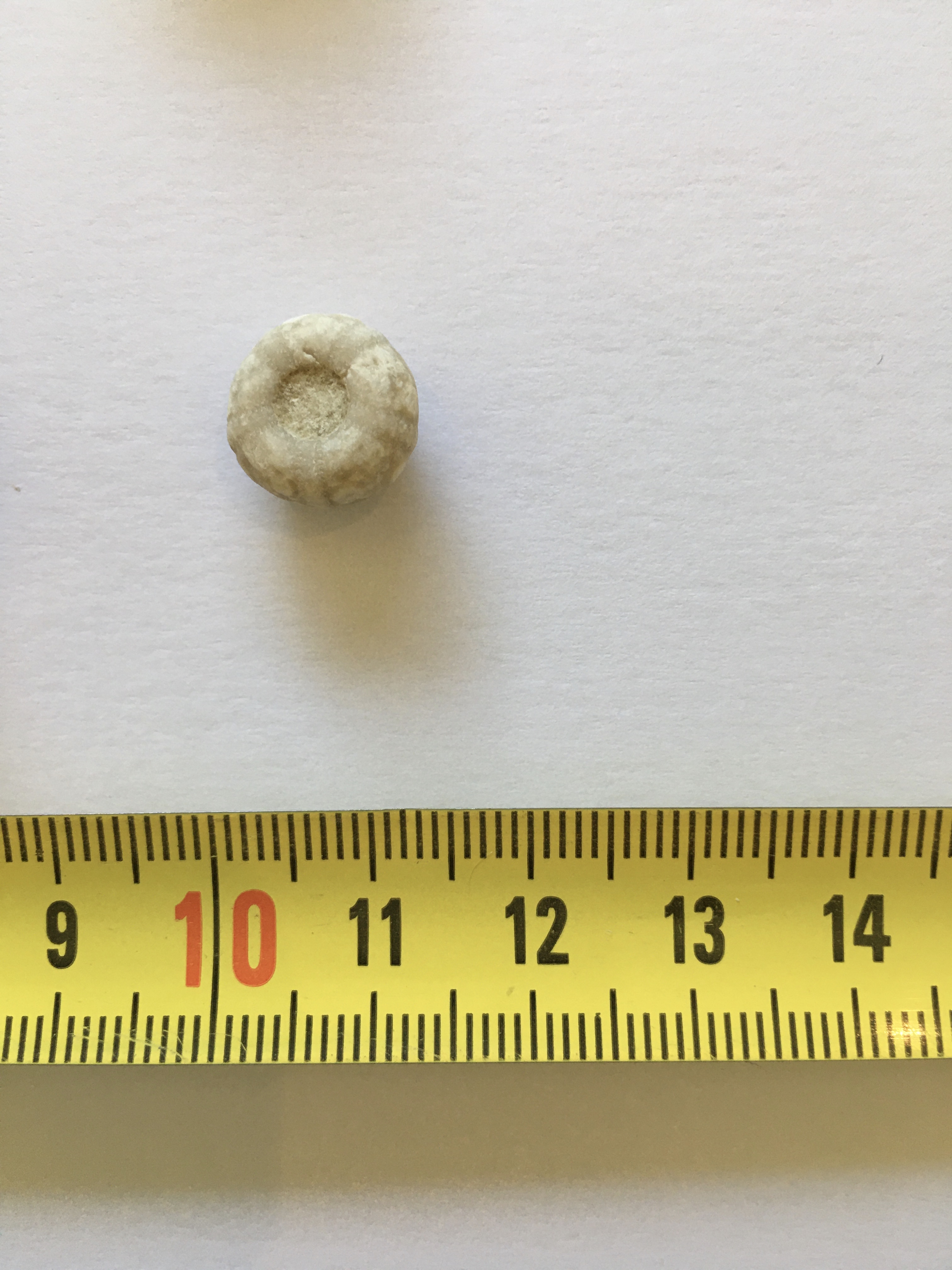 Leuk zeg, dat kleine zee-egeltje! Het is behoorlijk afgesleten, waardoor de identificatie denk ik wat lastig wordt. Op basis van de vorm en grootte moet je waarschijnlijk denken aan iets in de richting van Hyposalenia of zo.