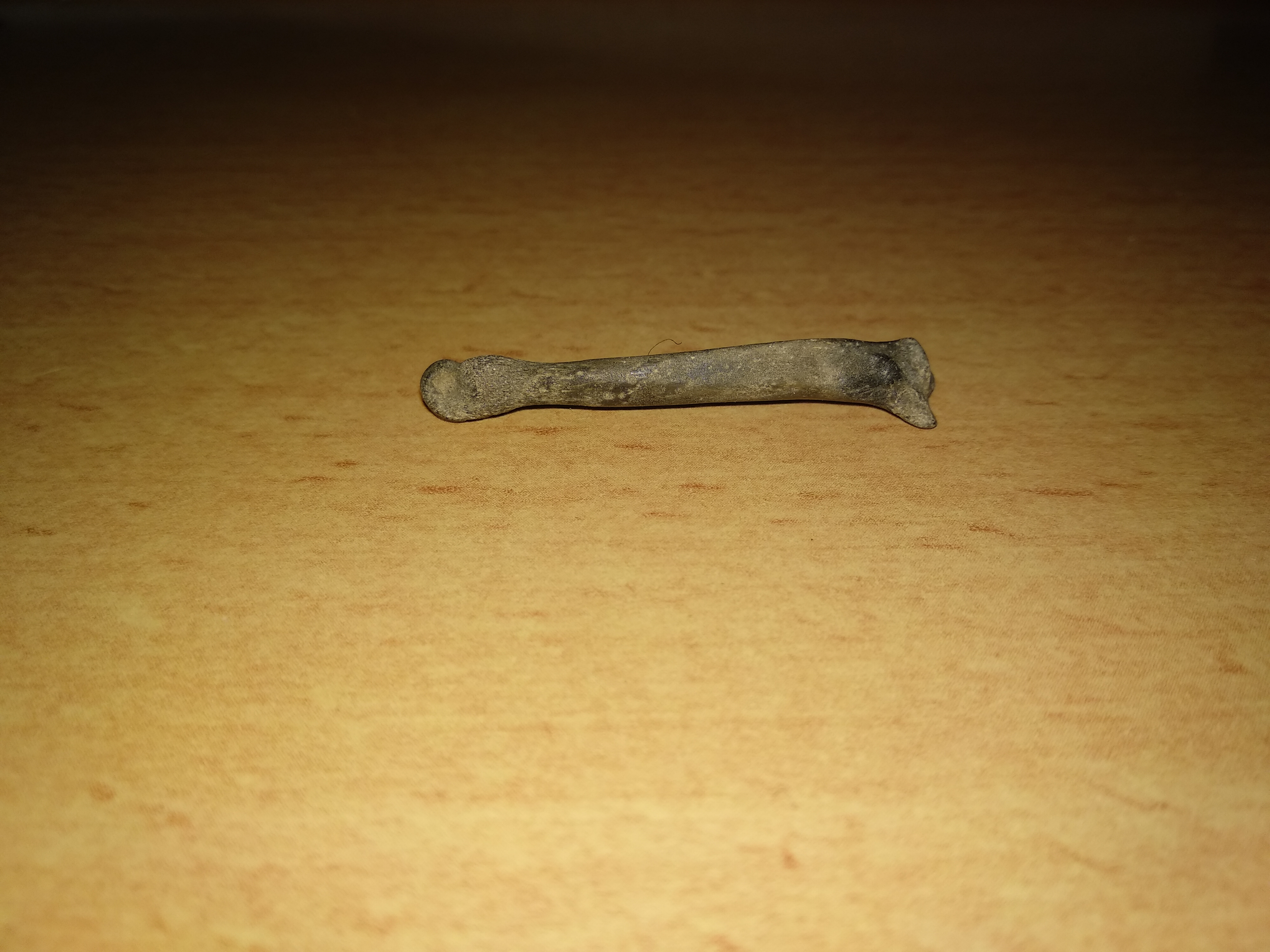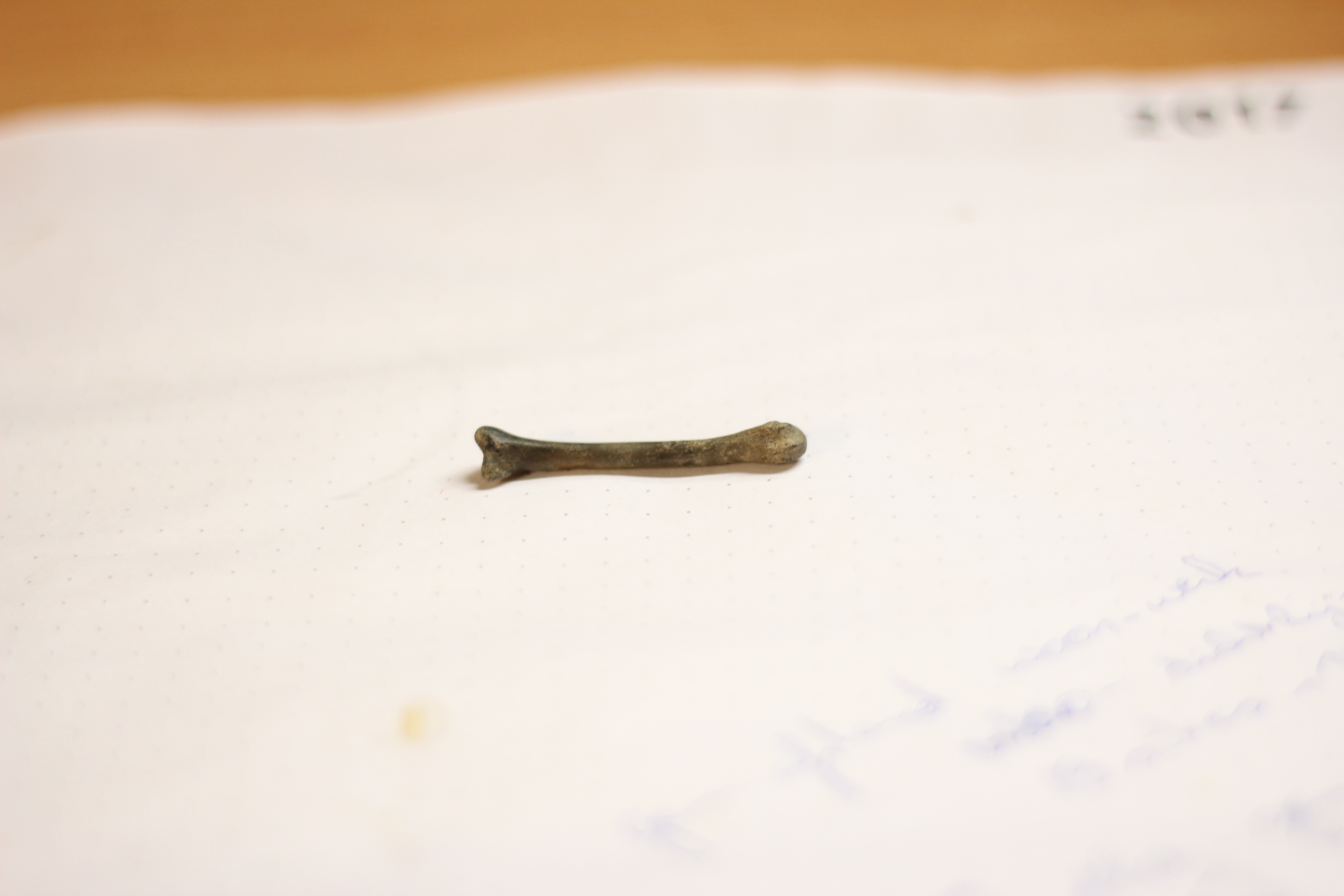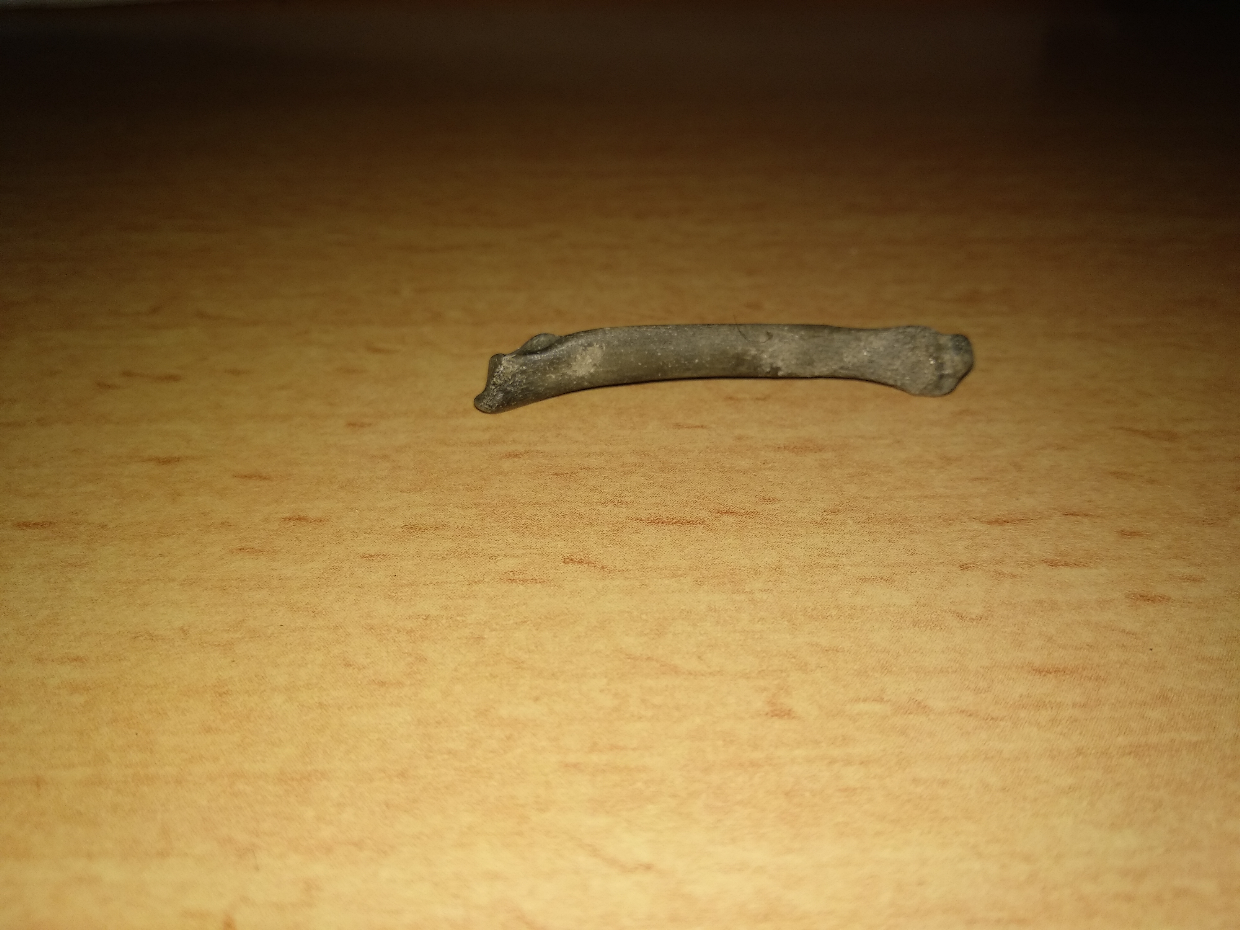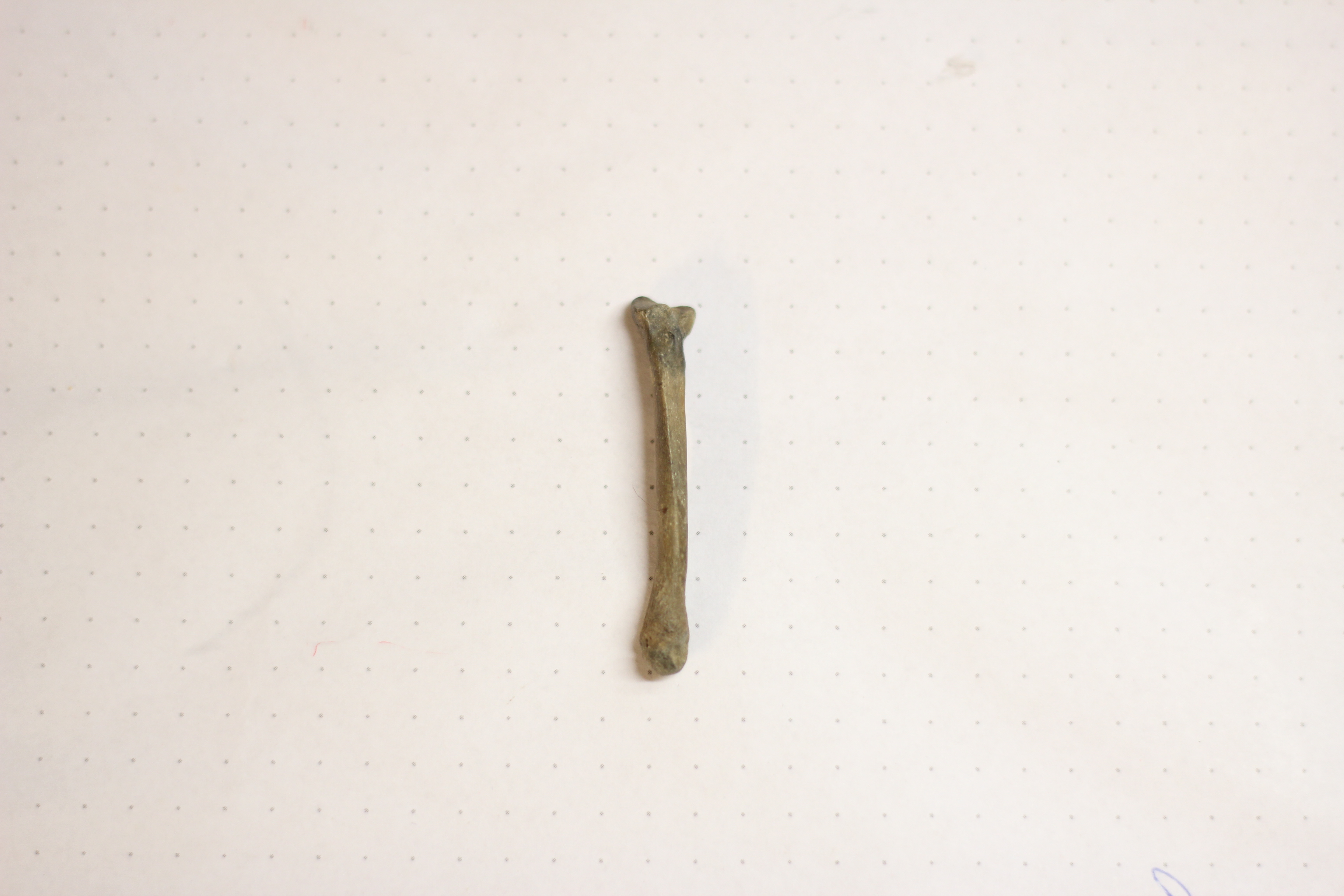 4 cm lang, veel kenmerken van een metatarsus 5. Ik kan het niet direct vinden. Dat betekend niet dat het zeldzaam is, maar eerder door een gebrek aan voldoende vergelijking materiaal. Het heeft overeenkomsten met otter, maar degene die ik heb gezien zijn iets meer dan 3 cm lang.