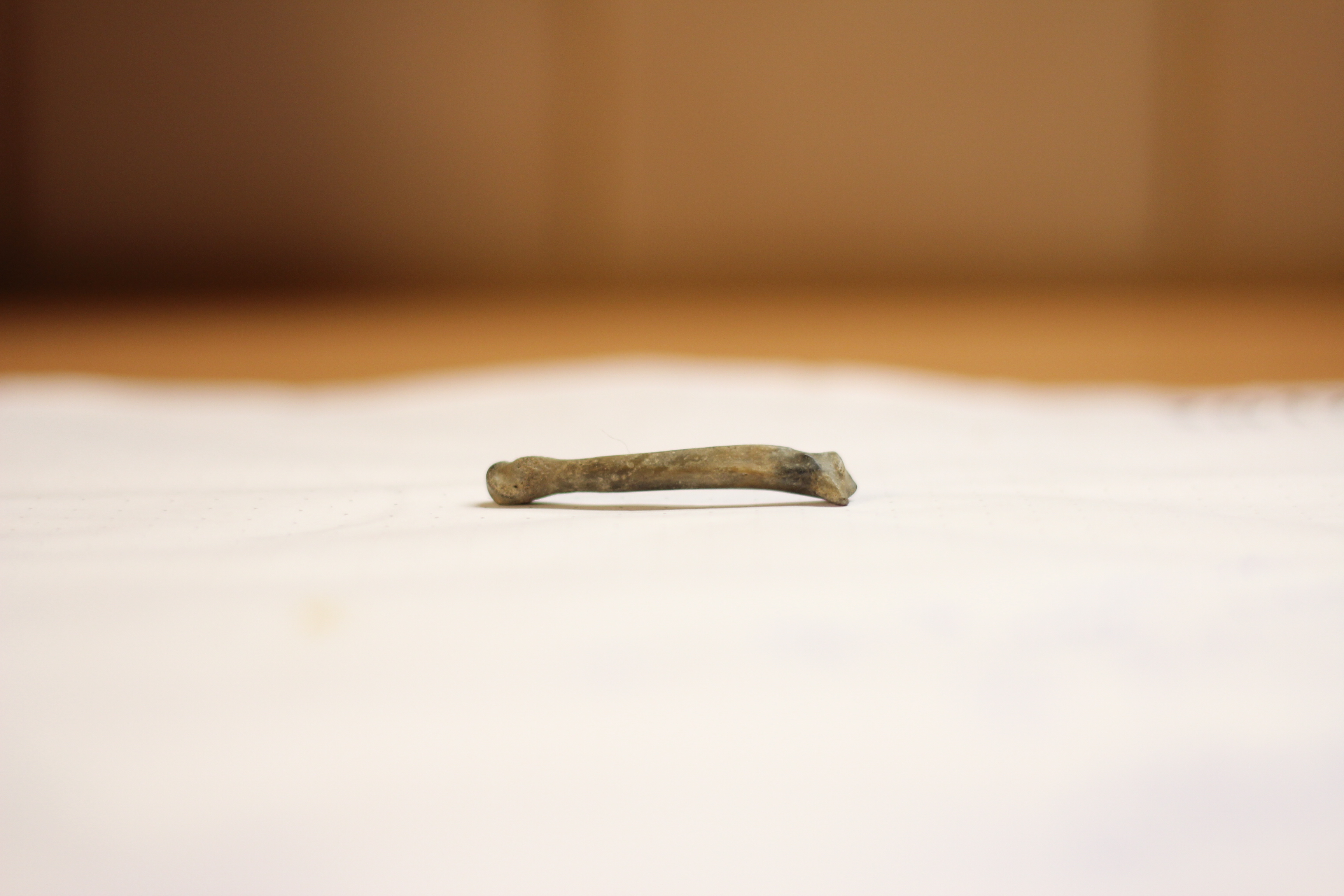 Hierbij een klein botje (4 CM lengte) gevonden in Oostende. Kan iemand er iets meer over zeggen? Kan er zelf niet direct iets op plakken, deed me in eerste instantie denken aan een tibia gezien het plateau aan één kant, andere kant klopt dan weer niet.