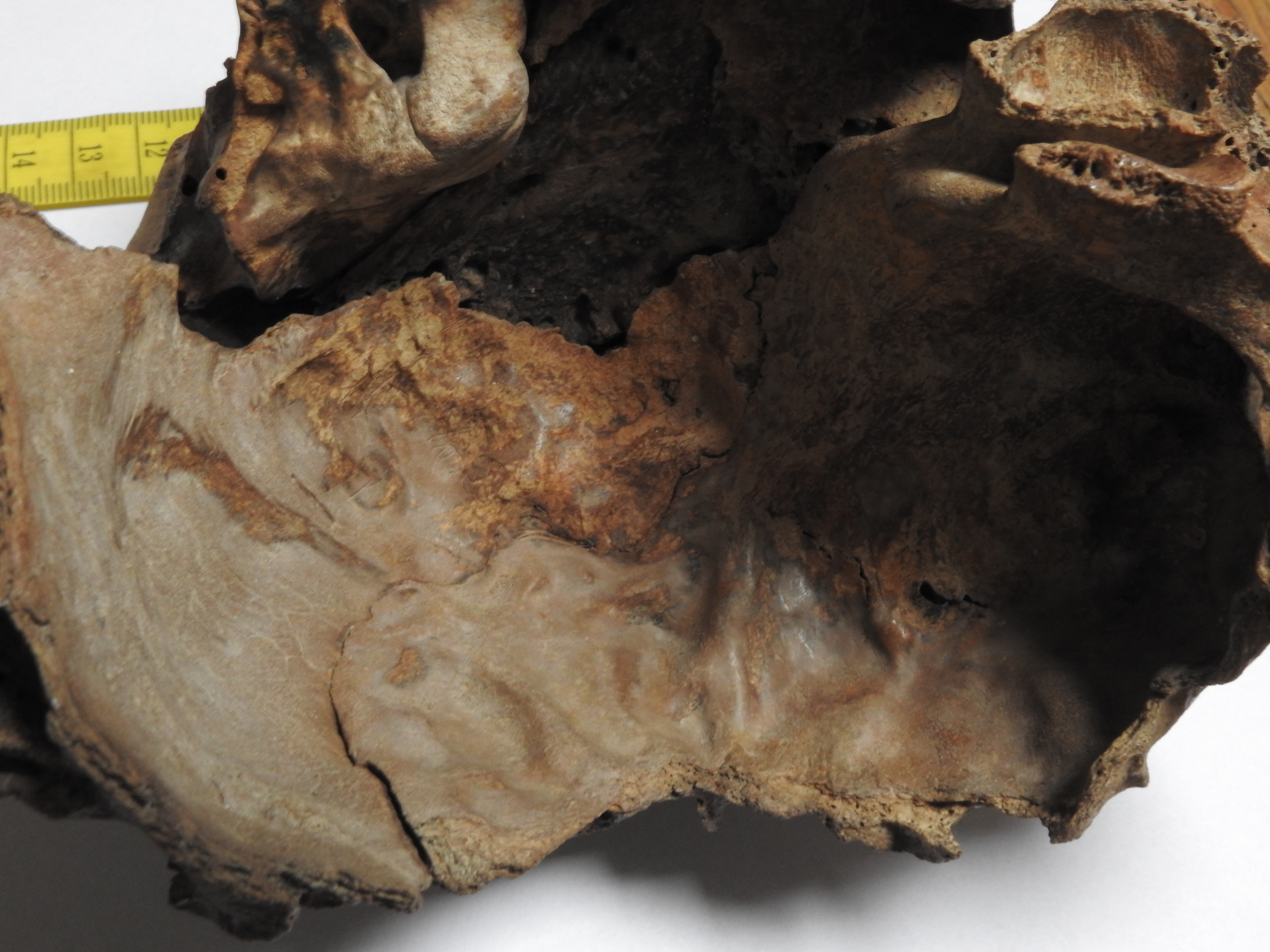 Aan de binnenzijde zit een soort gegolfd reliëf dat enigzins op de vorm van hersenen lijkt.