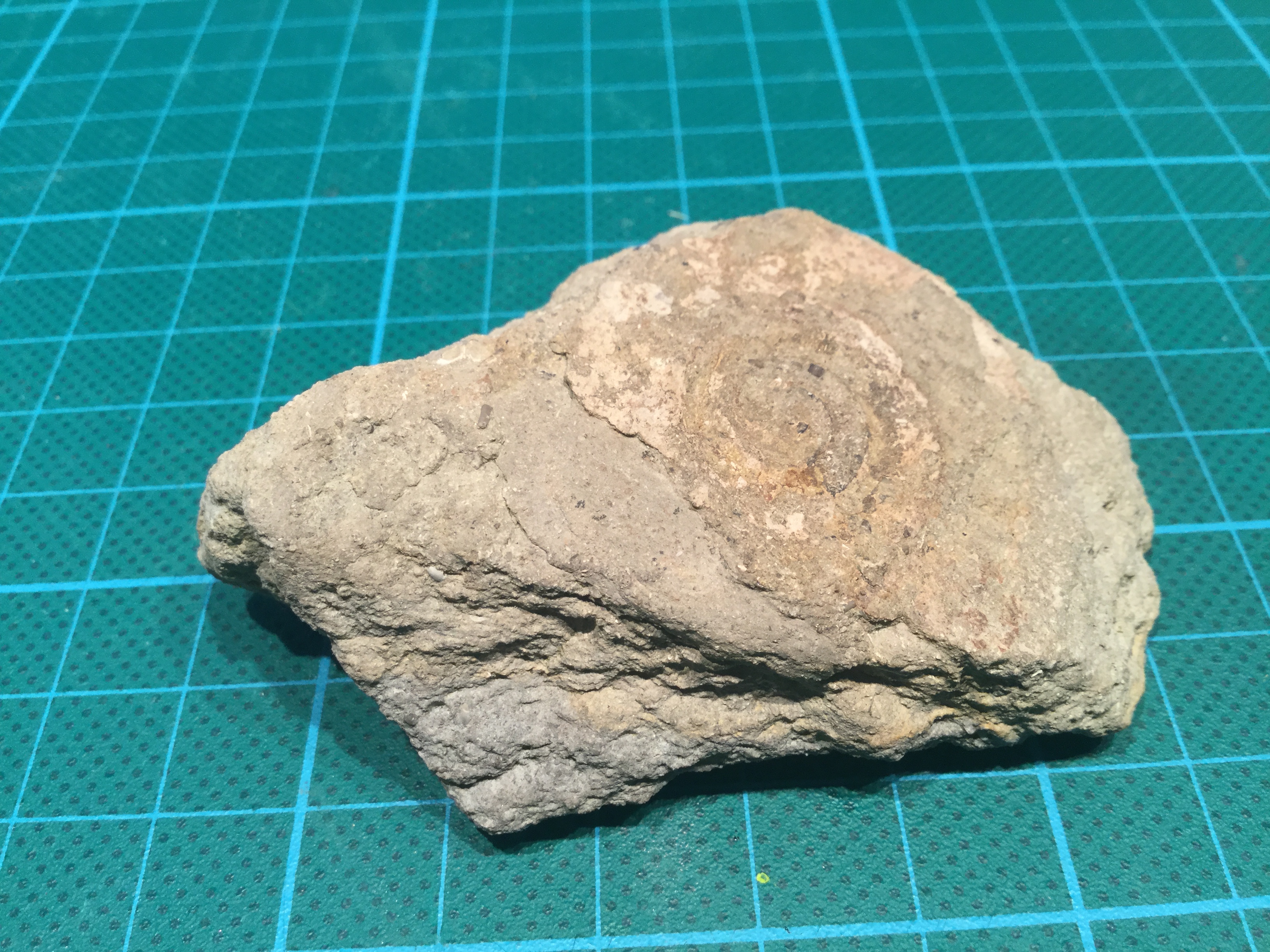 Als derde voor vandaag nog een stukje met een soort afdruk van een spiraal. Ik heb geen idee of dit iets is.