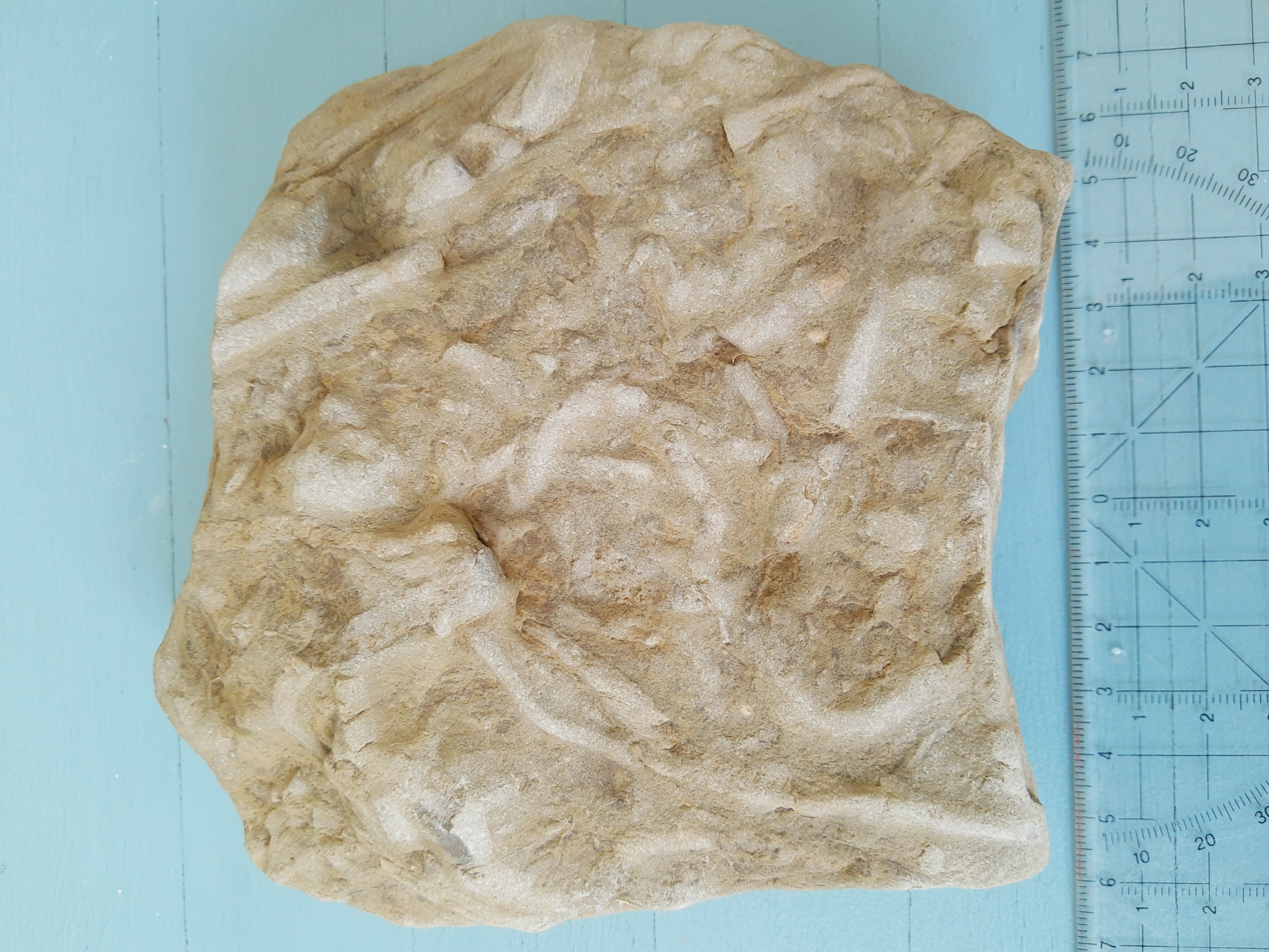 Dit stuk steen vond ik in de Karwendel. Zijn dit botjes? De steen is heel hard en vast. Anders dan de stenen waar ik meestal fossielen in vind.