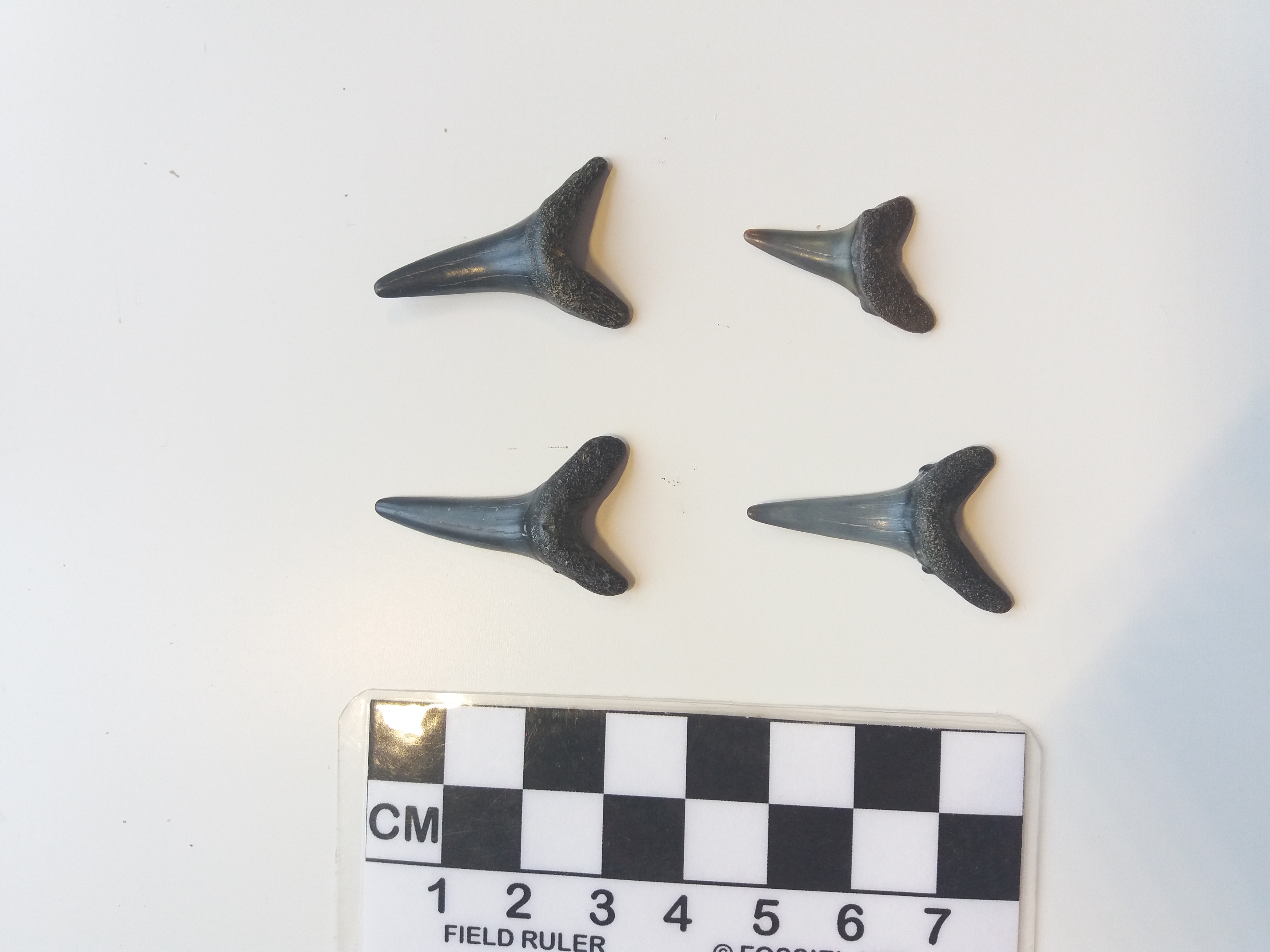 In batch 3 heb ik enkele middelgrote haaientanden waarvan ik niet zeker ben of ze nu behoren tot de makreelhaaien of zandtijgerhaaien, ik leun meer richting makreelhaai maar ik vind het nog steeds moeilijk om bij sommige van de tandposities een goed onderscheid te maken.