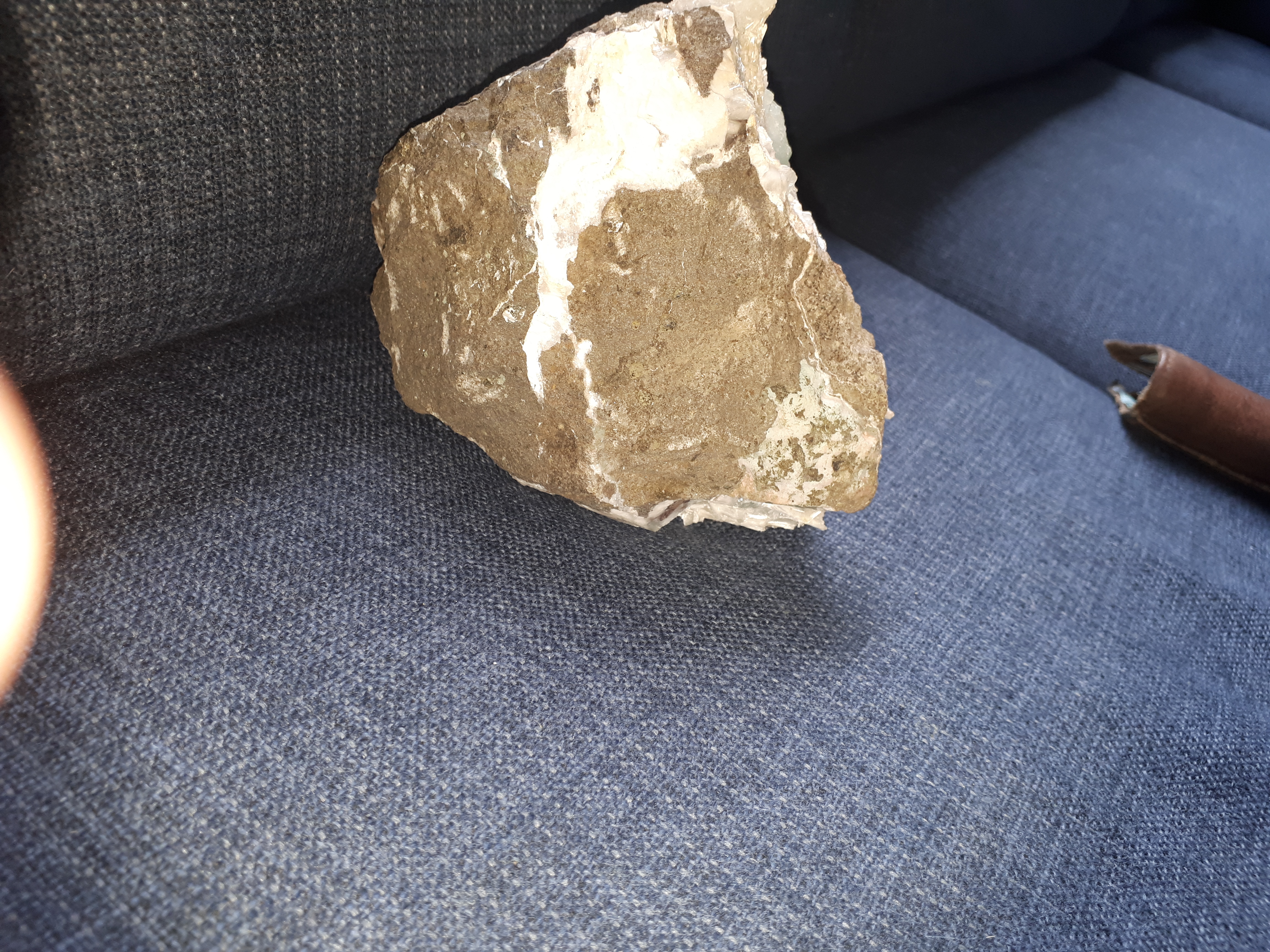 Het witte vezelige mineraal op foto 2 and 3 lijkt verdacht veel op asbest. Waarschijnlijk amfibool asbest. Dubbel verpakken in plastic en dan weggooien. Het is de drie euro niet waard.
