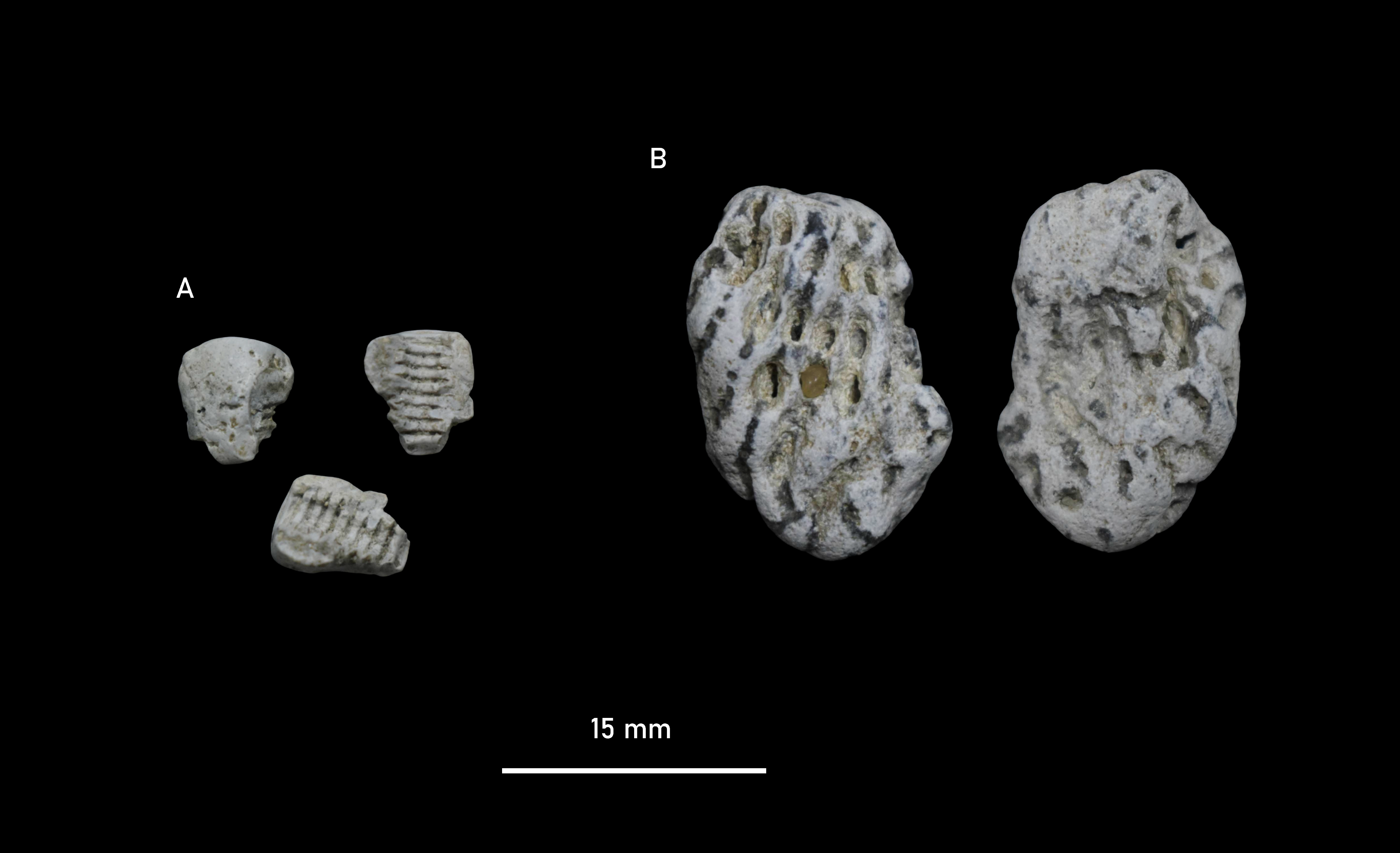 Ziet eruit als een stukje van de trechterwand van een spons: ik dacht eerst aan een Krijtspons, maar twijfel omdat ie zo grijs is/lijkt.