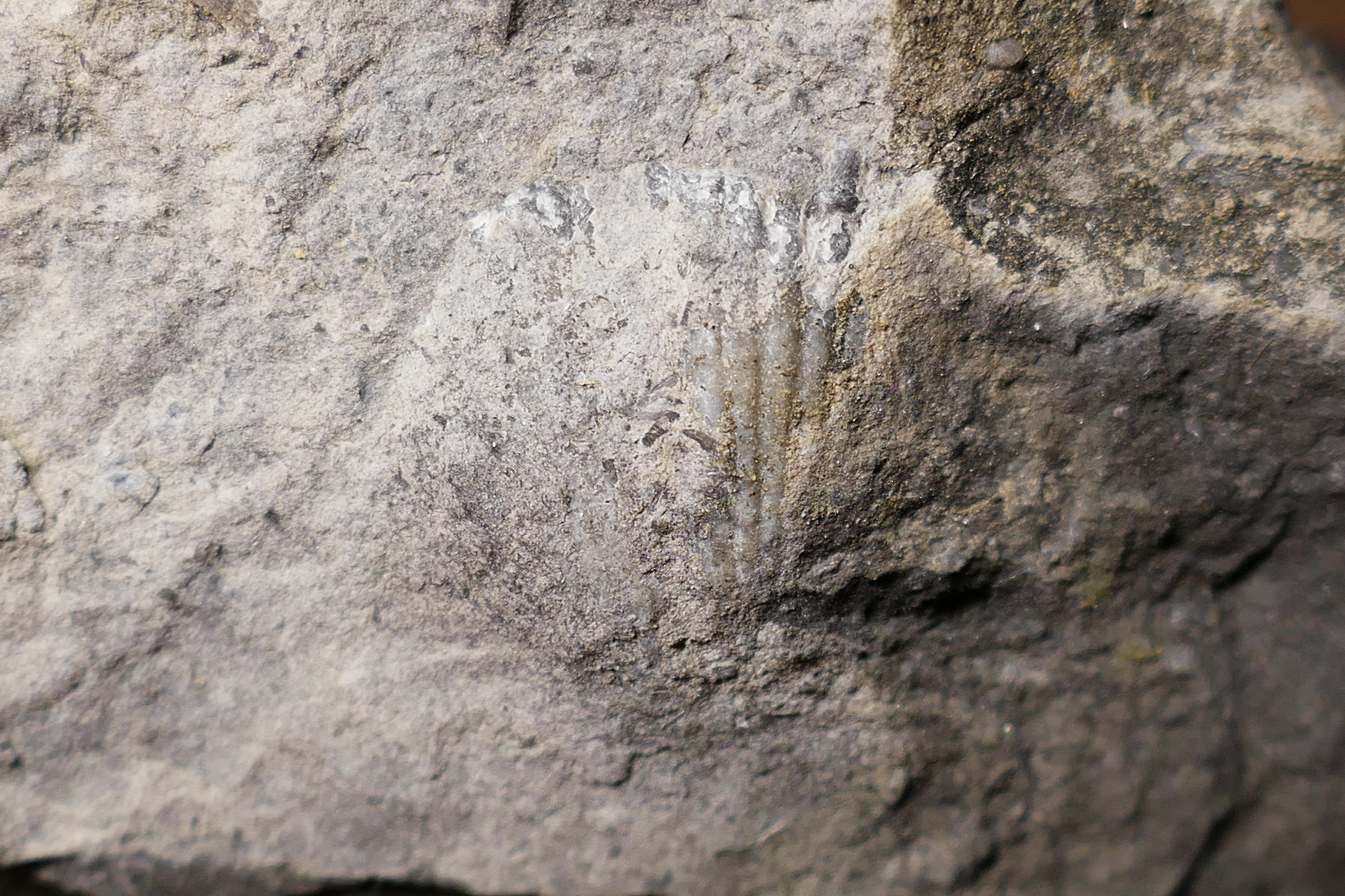Kleine brachiopode (ong. 10mm): Een kleine Spirifer-achtige (10-15mm), nog grotendeels bedekt met sediment. Wellicht eentje om eens KOH op uit te proberen: En een solitair koraaltje, ook ong. 10mm: Verder helaas niets noemenswaardig om eruit te halen. Maar wel leuk om er weer even een kijkje te nemen.