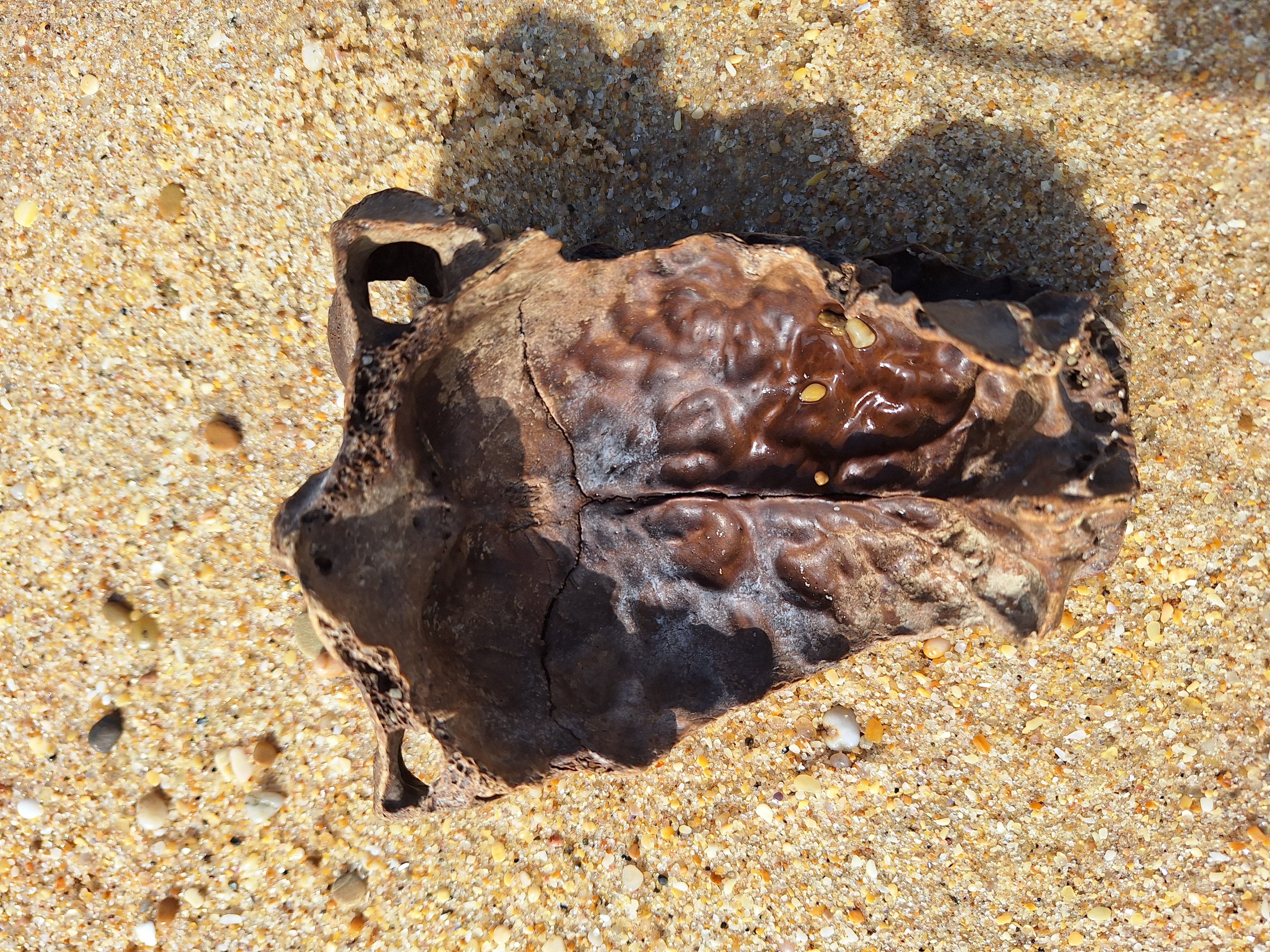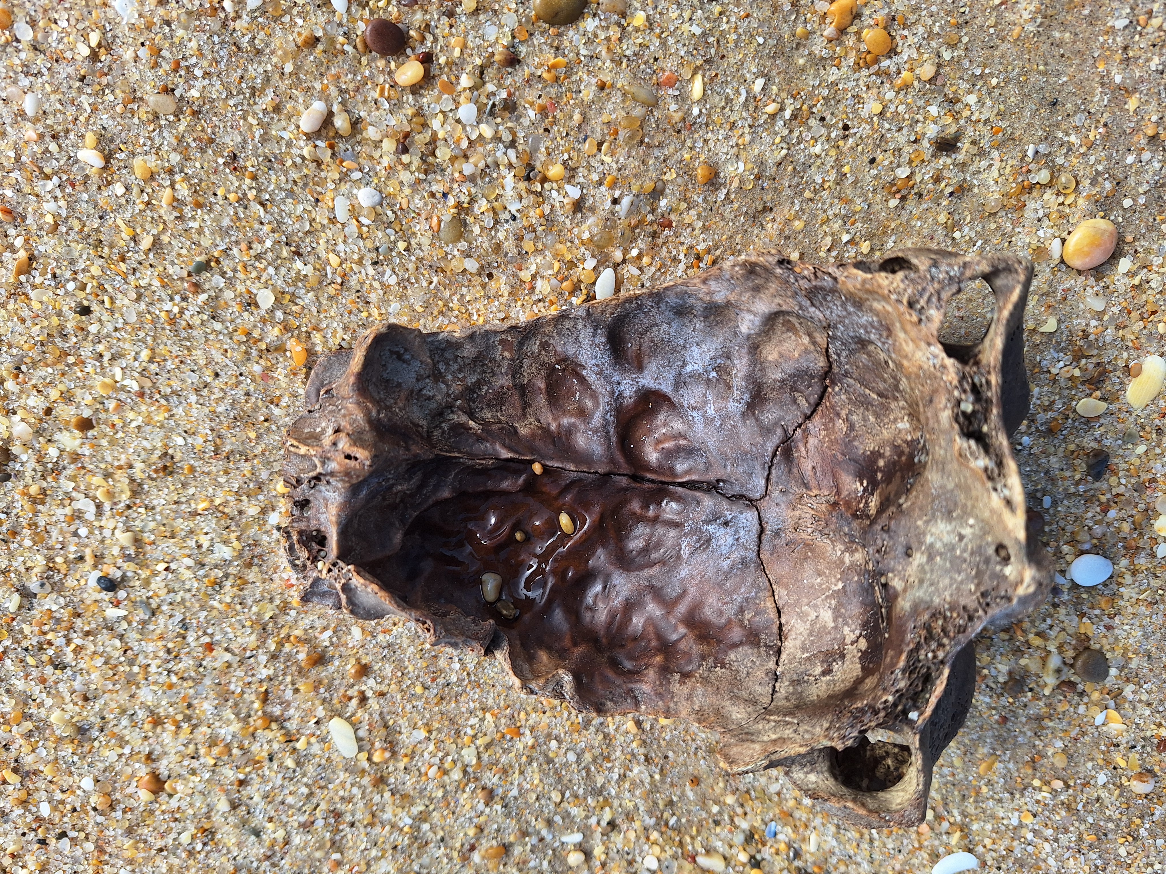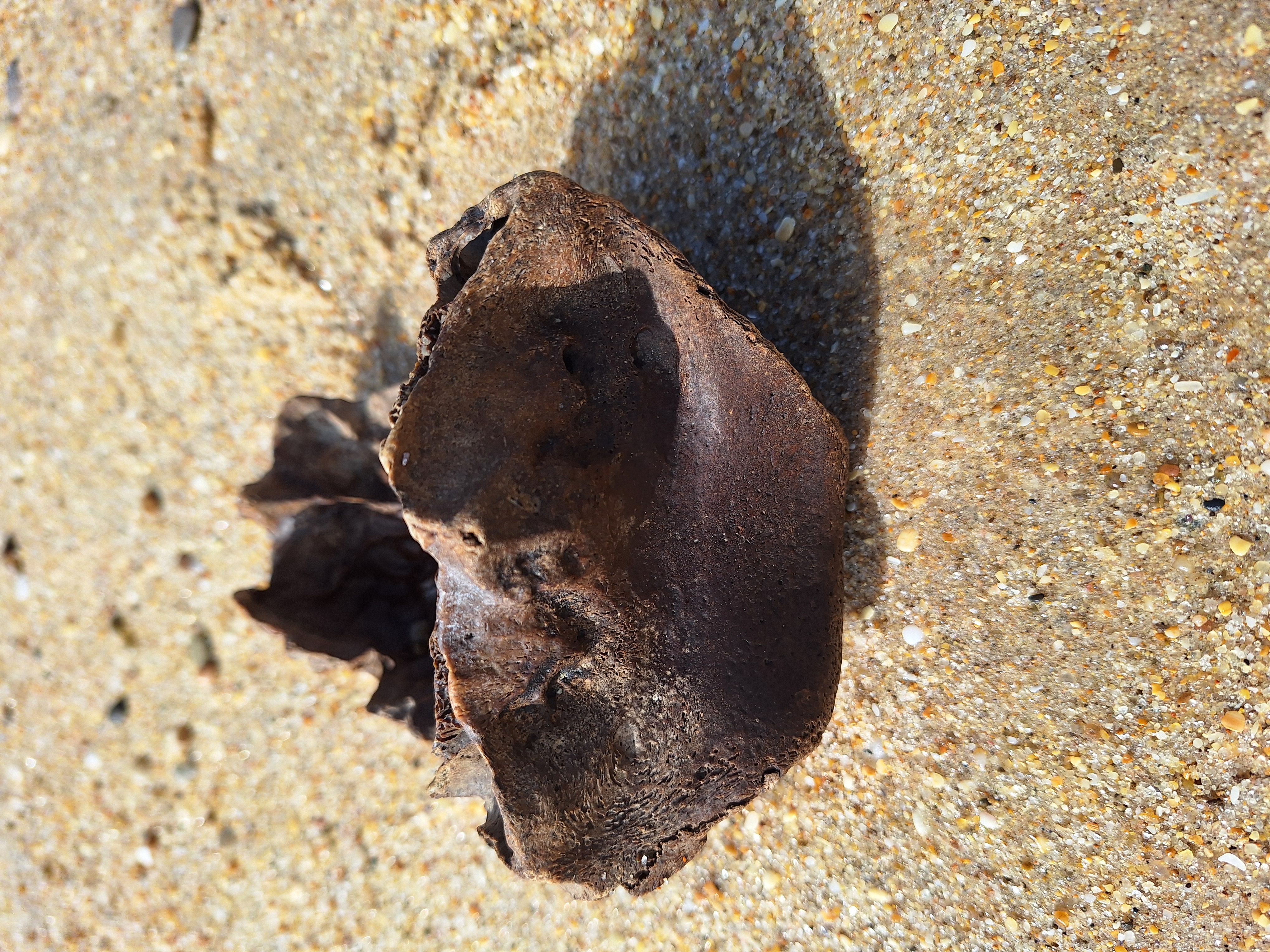 Volgens mij een stuk van een runderschedel.