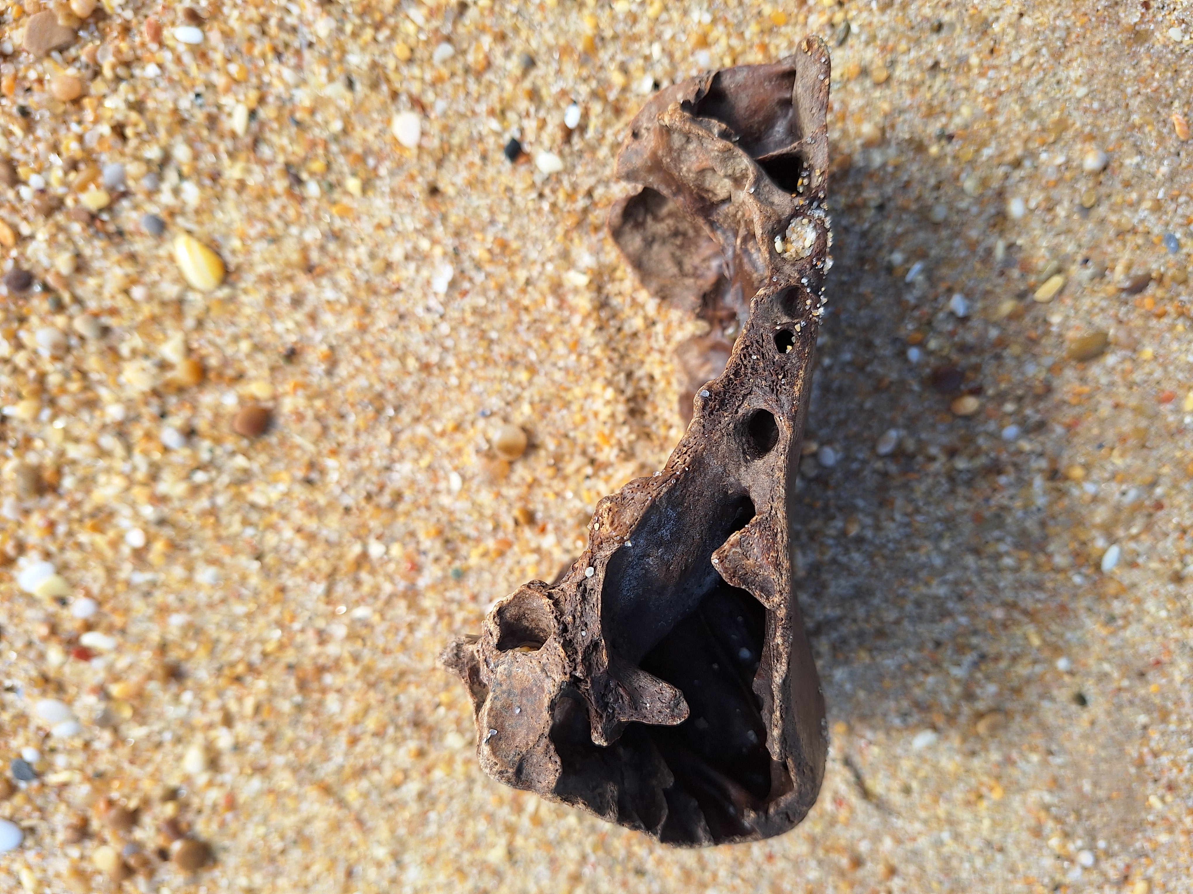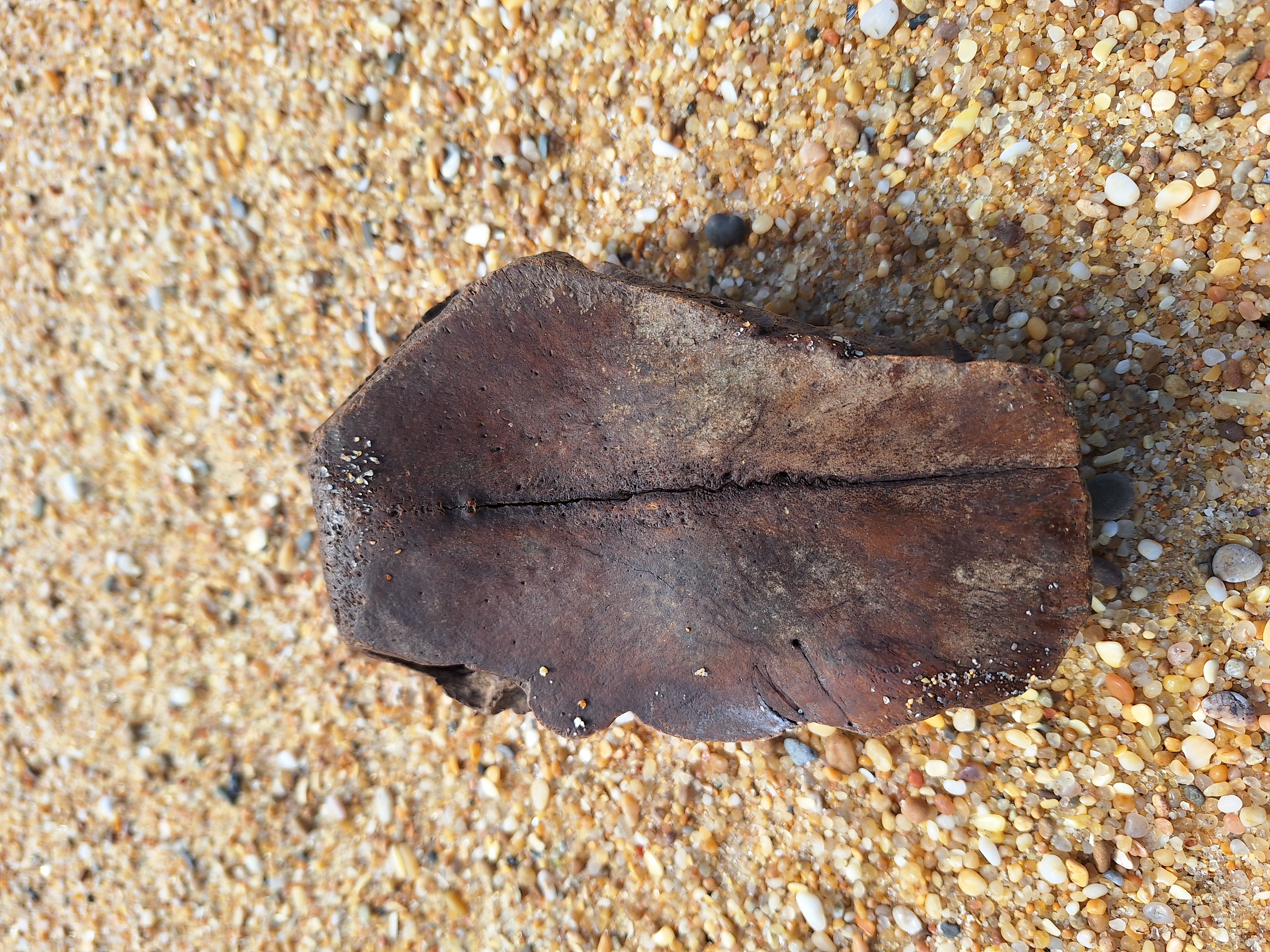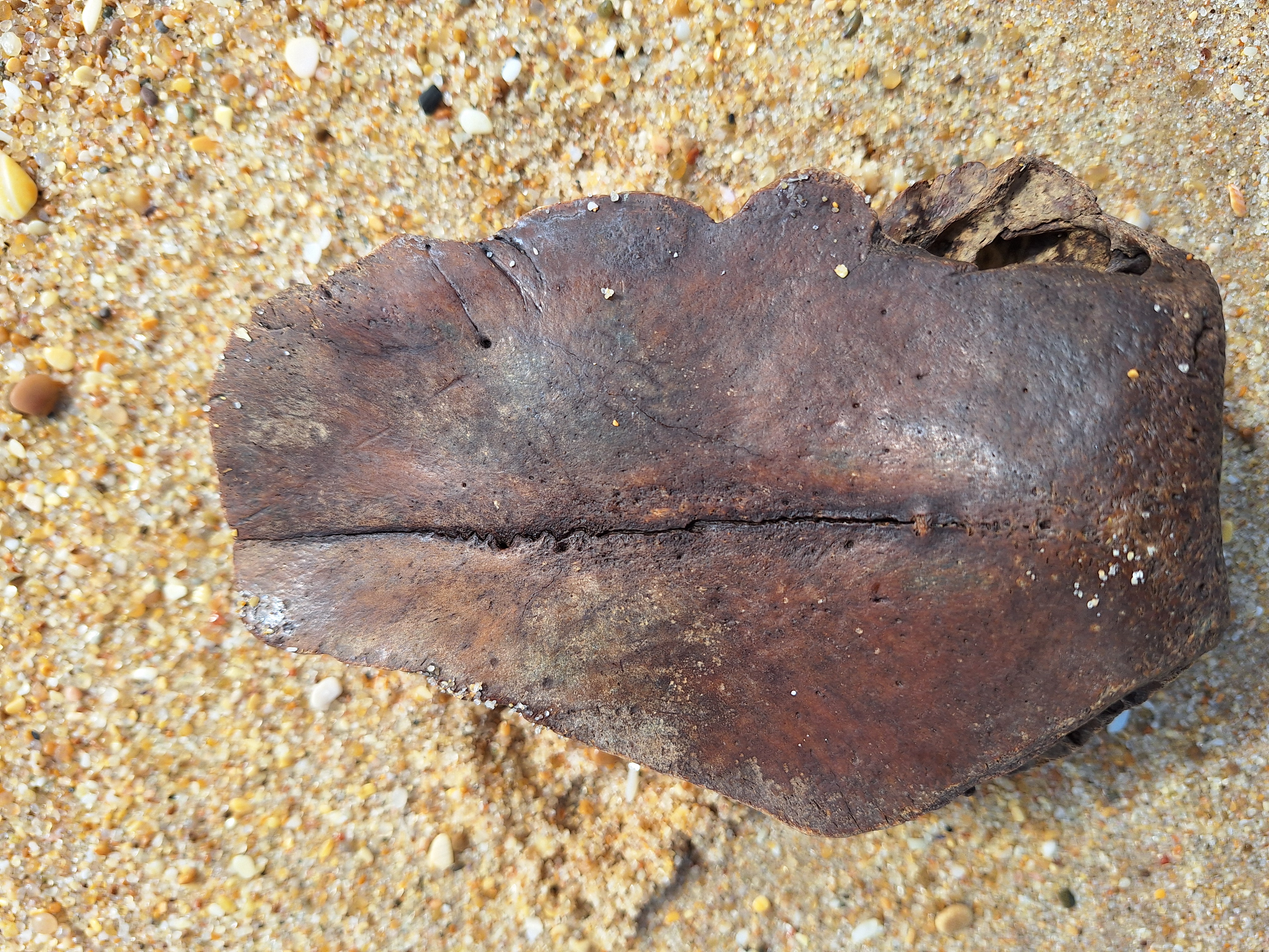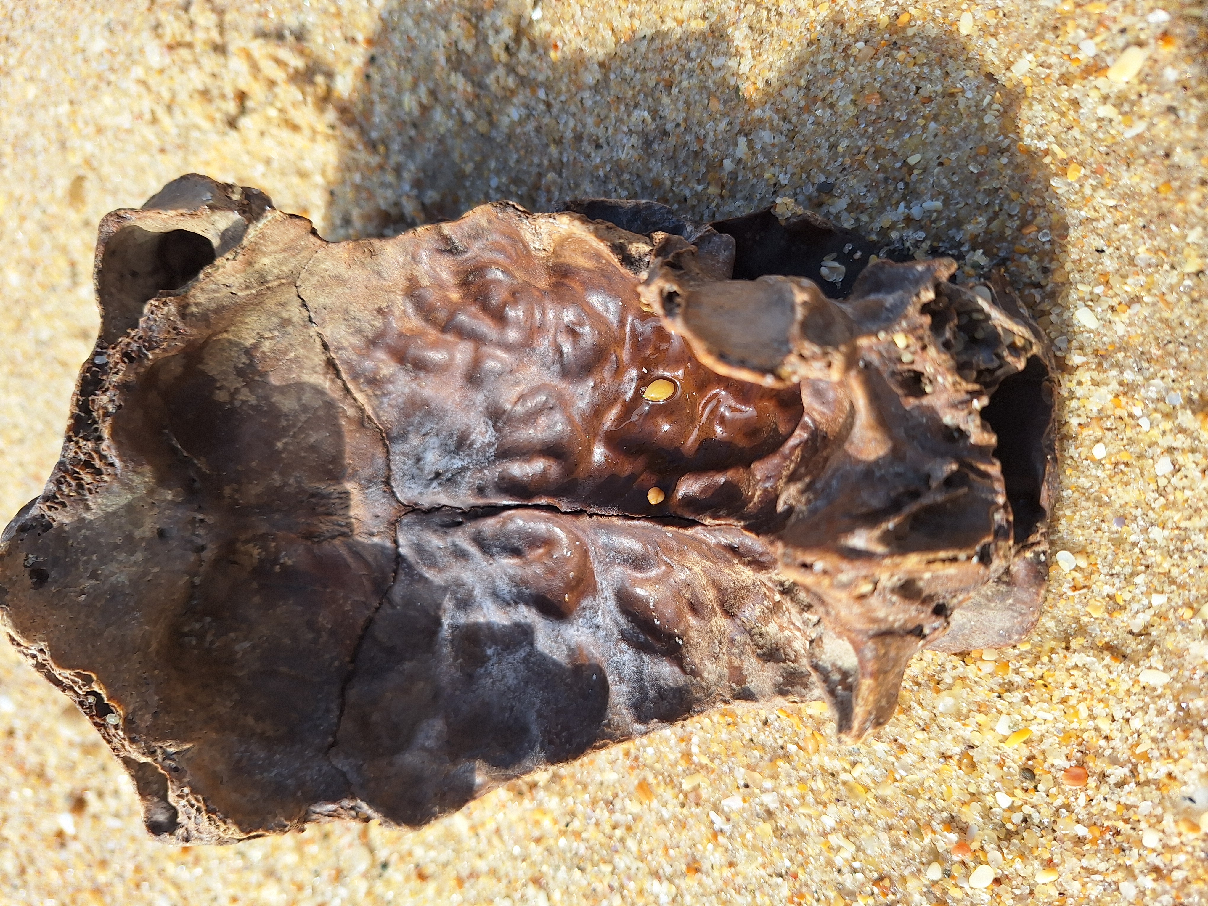 Volgens mij een stuk van een runderschedel.