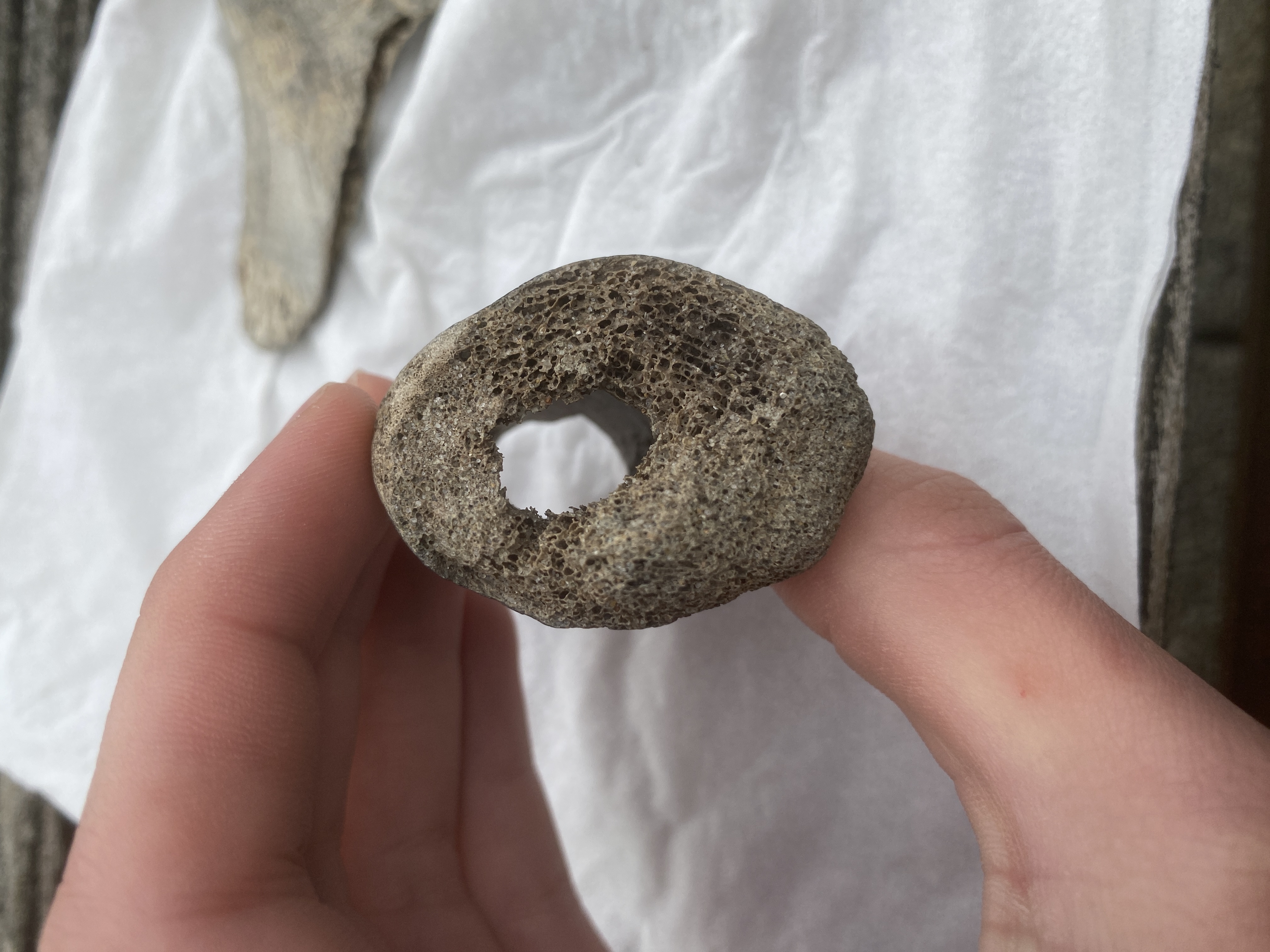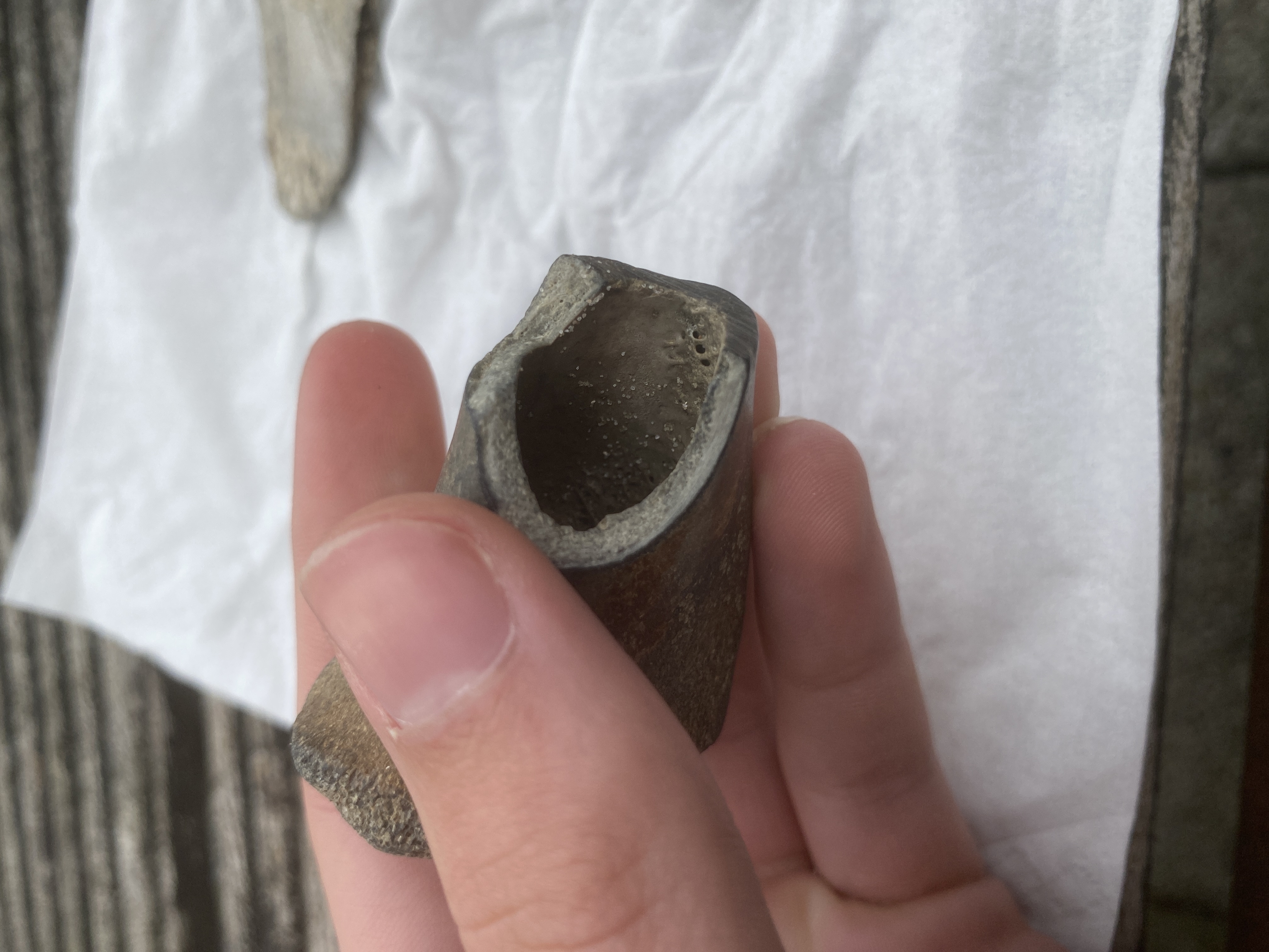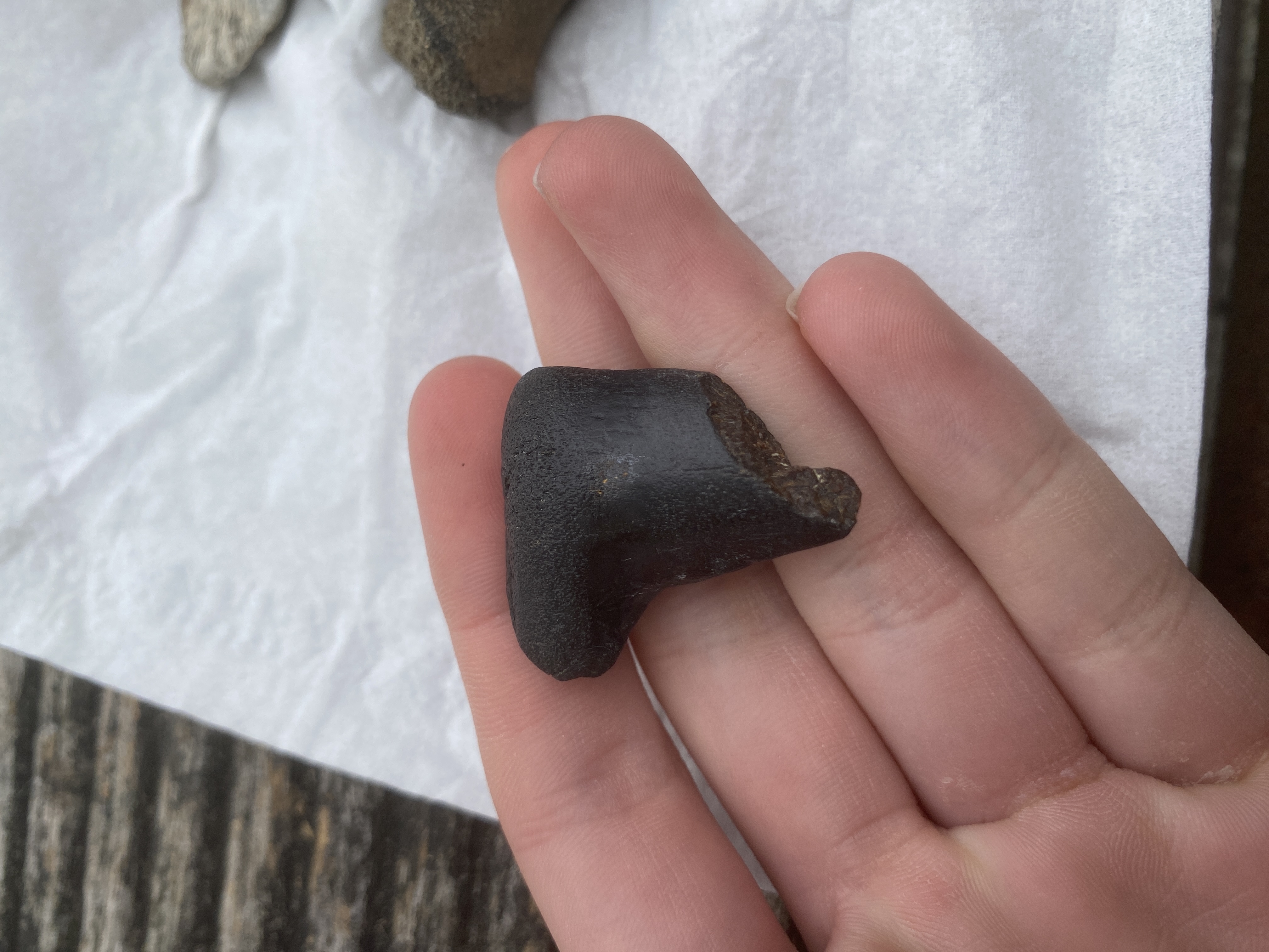 Op de laatste foto zie je iets waarvan ik niet goed weet wat het is. Zou dit een afgebroken haaientand kunnen zijn, of is het gewoon een steentje?