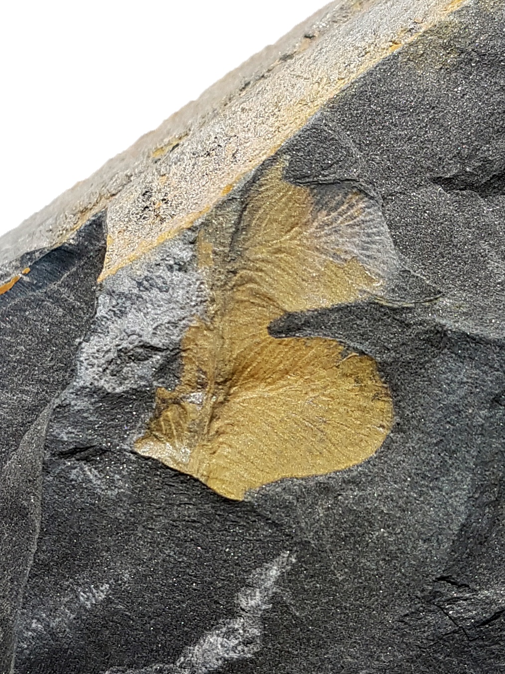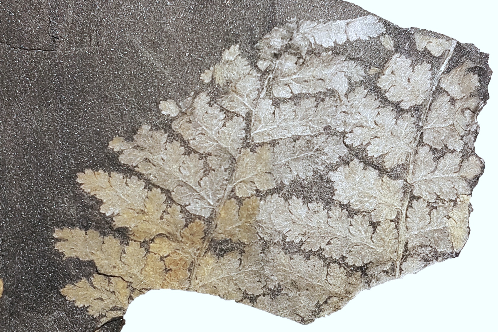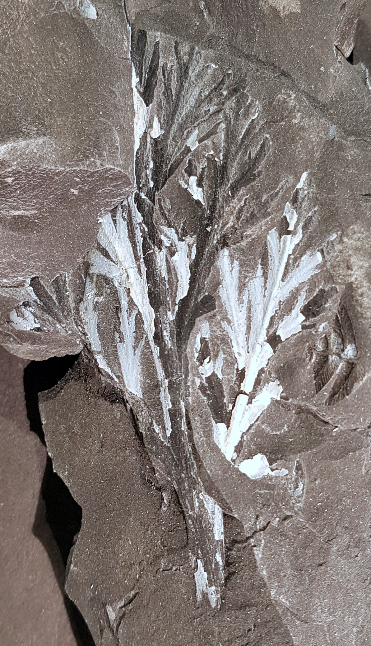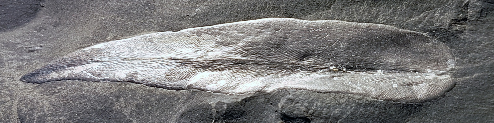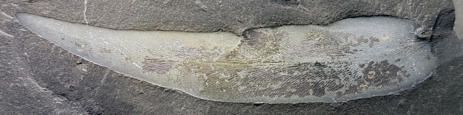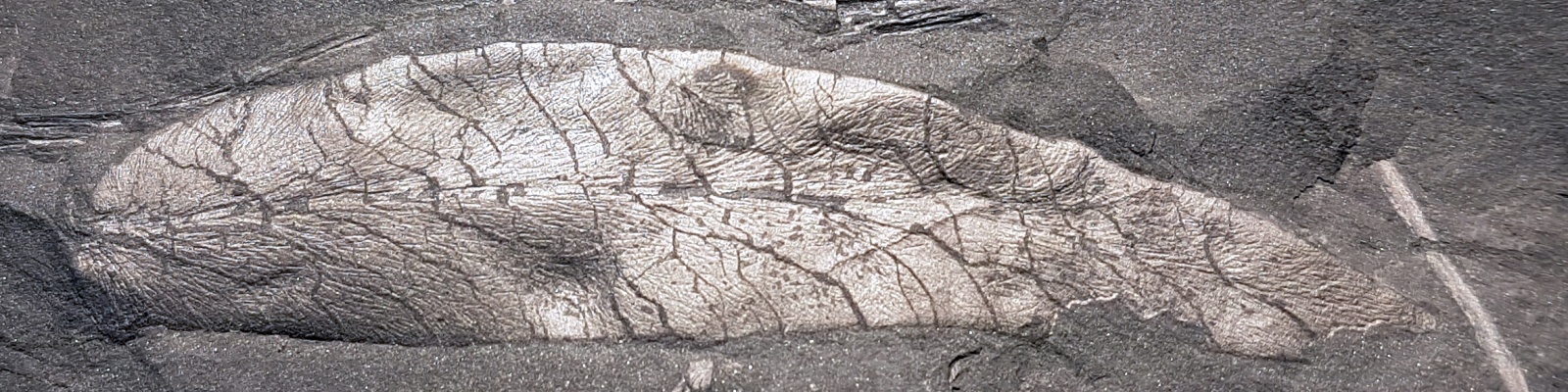 Tweede pinna-fragment, algemene vorm enigszins verstoord, maar laat nervatuur beter zien.