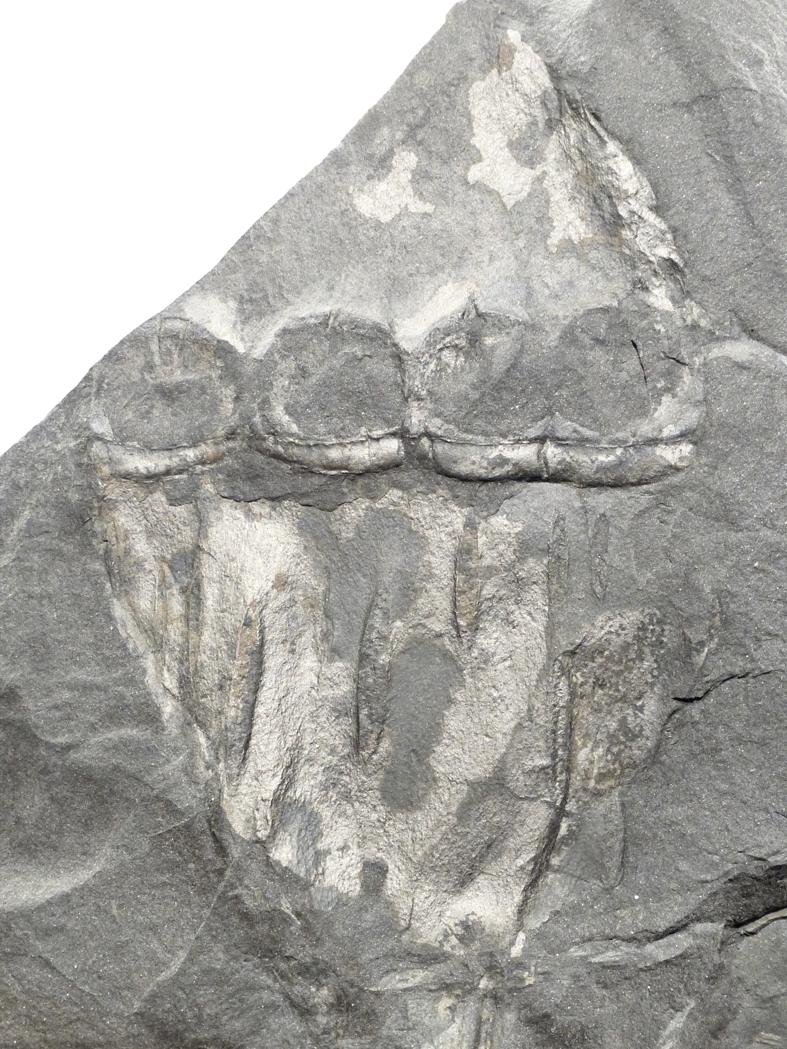Fragment van een pinna, laat de algemene vorm goed zien.