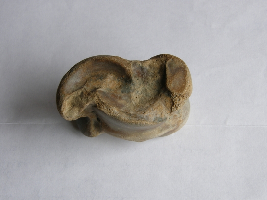 Op het strand bij Ritthem dit bot gevonden vorige week. Op de waterlijn. Is het fossiel. En wat zou het kunnen zijn. Ziet er uit als soort gewricht.