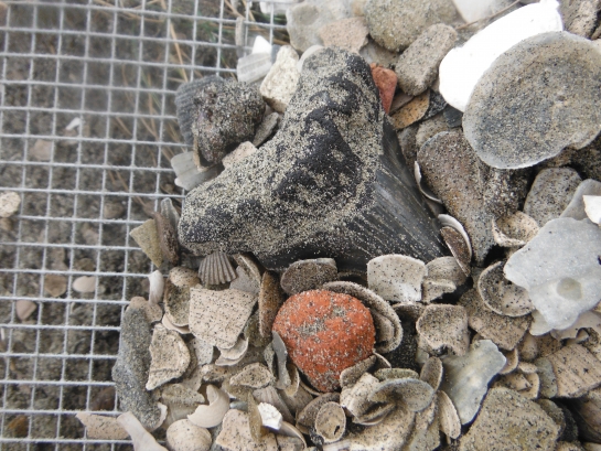 Maar ik vroeg mij af of dit een posterior is aangezien de vorm duidelijk verschilt van de grote tanden voorin het midden van de bek en omdat de tand relatief klein is? Of is het helemaal geen megalodon maar een van zijn voorouders?