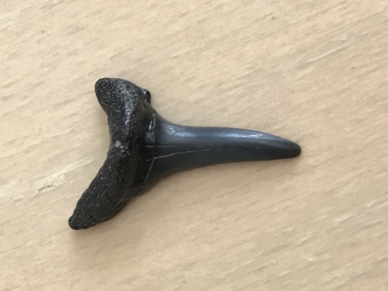 Hoogstwaarschijnlijk een tand van eocene ouderdom (ca. 55-35 miljoen oud). Ik ben inmiddels een beetje roestig aan het worden met het determineren van haaientanden, maar ik vermoed dat het hier om een bovenkaakse Brachycarcharias lerichei gaat.