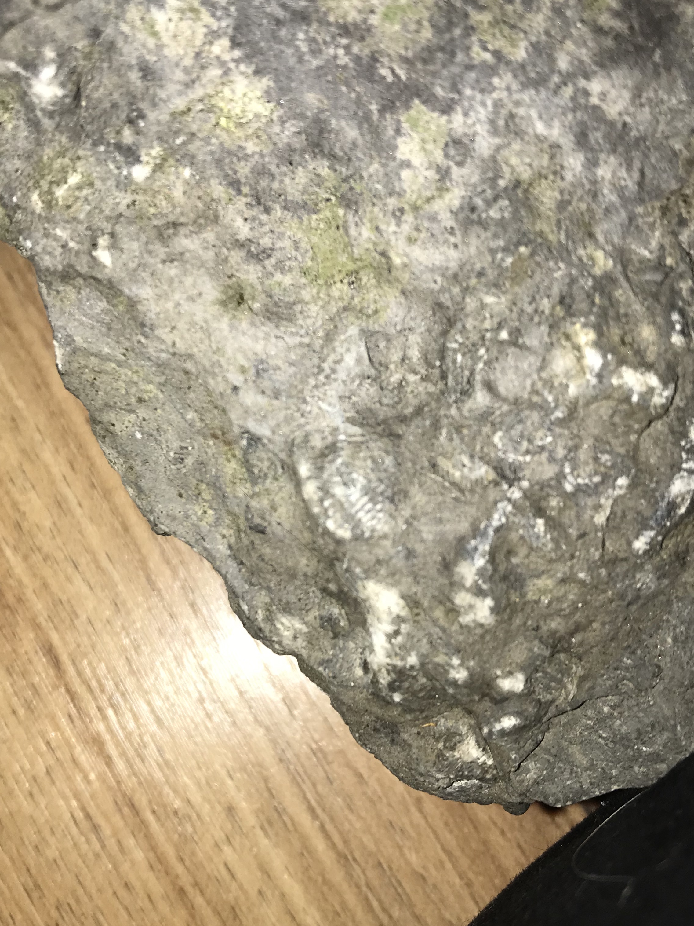 Ik ben vanochtend naar de zelfde locatie geweest waar ik pas geleden koralen had gevonden. Ik heb nog veel meer leuke vondsten gedaan, maar ik zag dit in een steen zitten en ik vroeg me af of het een trilobiet was. Het lijkt er wel op, maar ik was niet zeker
