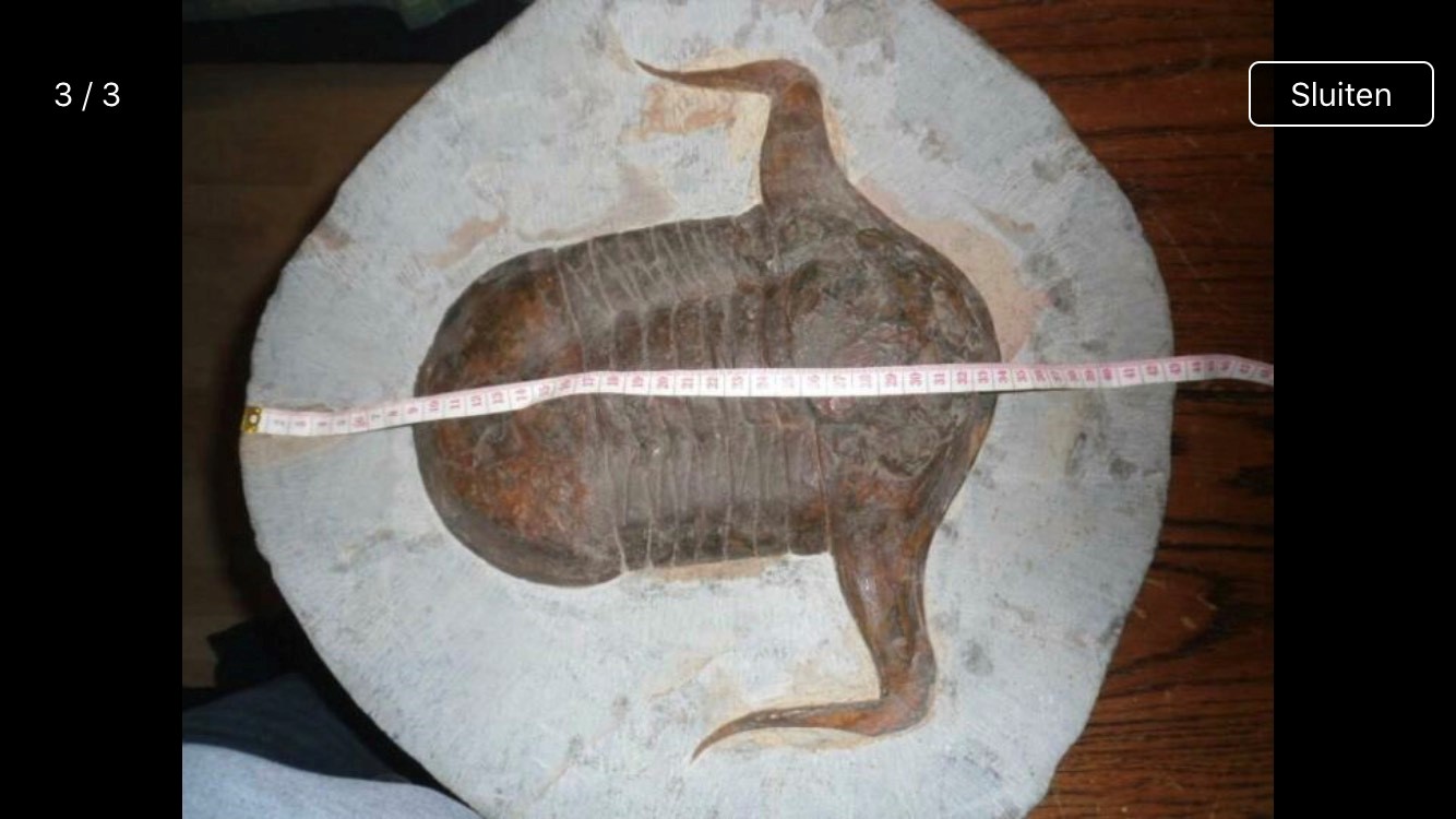 Wie weet de exacte naam en vindplaats van deze grote trilobiet? De afmeting is 20/22 cm. Zijn dergelijke trilobieten zeldzaam?
