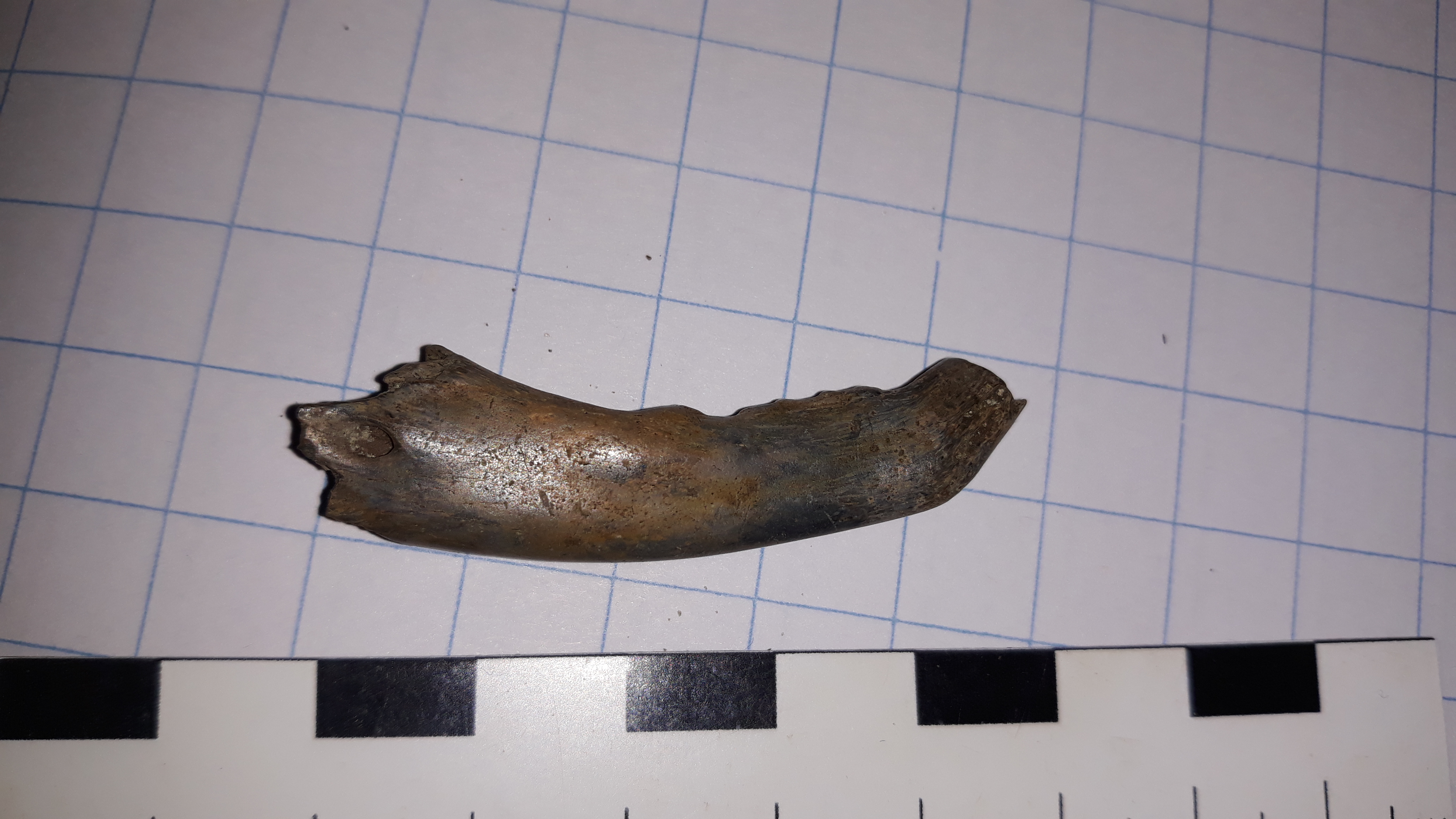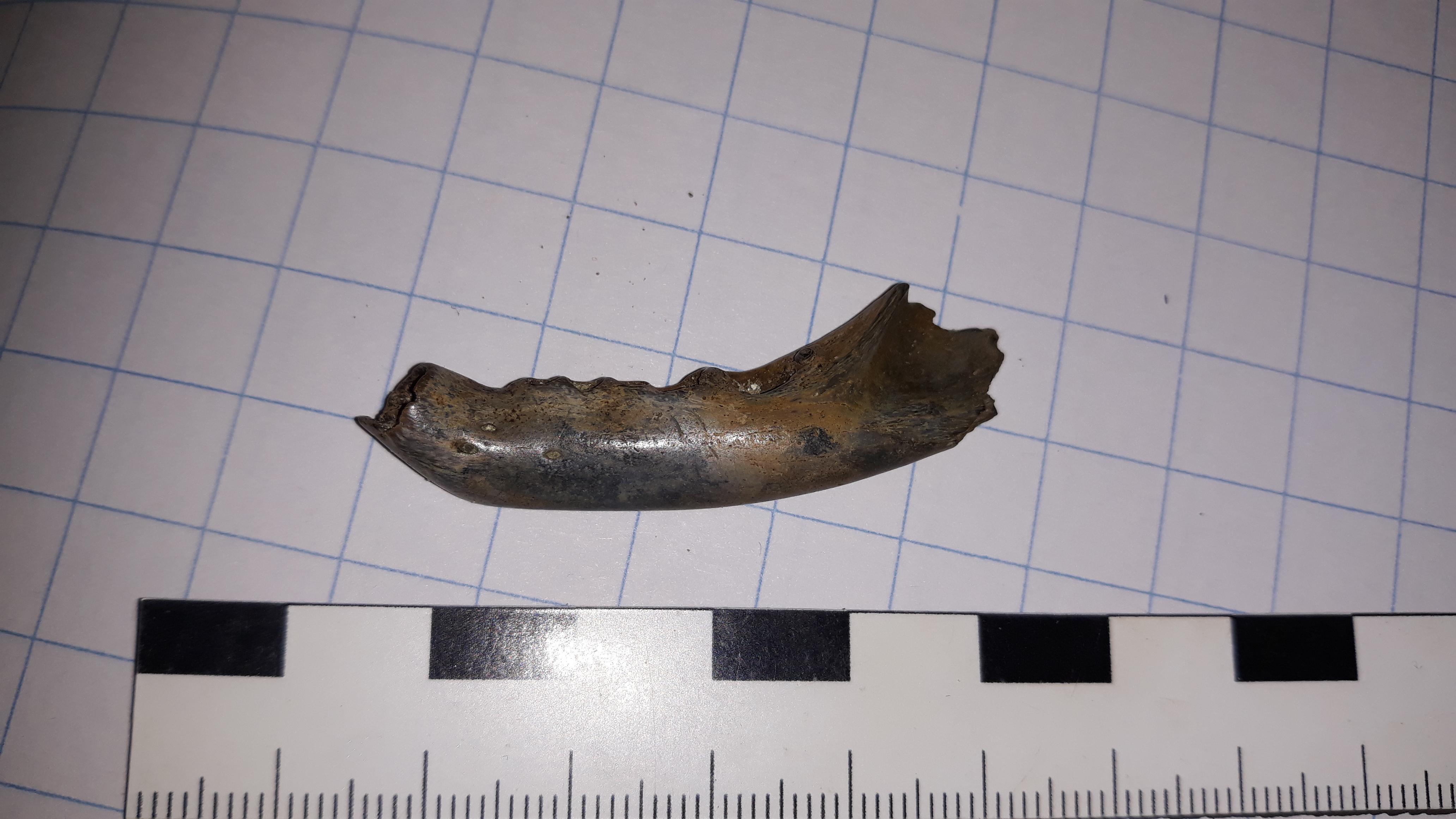 Das is te groot, bunzing te klein en steenmarter lijkt ook niet overeen te komen. Het zou een forse boommarter kunnen zijn, maar ook nog otter. Daarvoor zou het kaakje naast een kaakje van die soorten gehouden moeten worden.