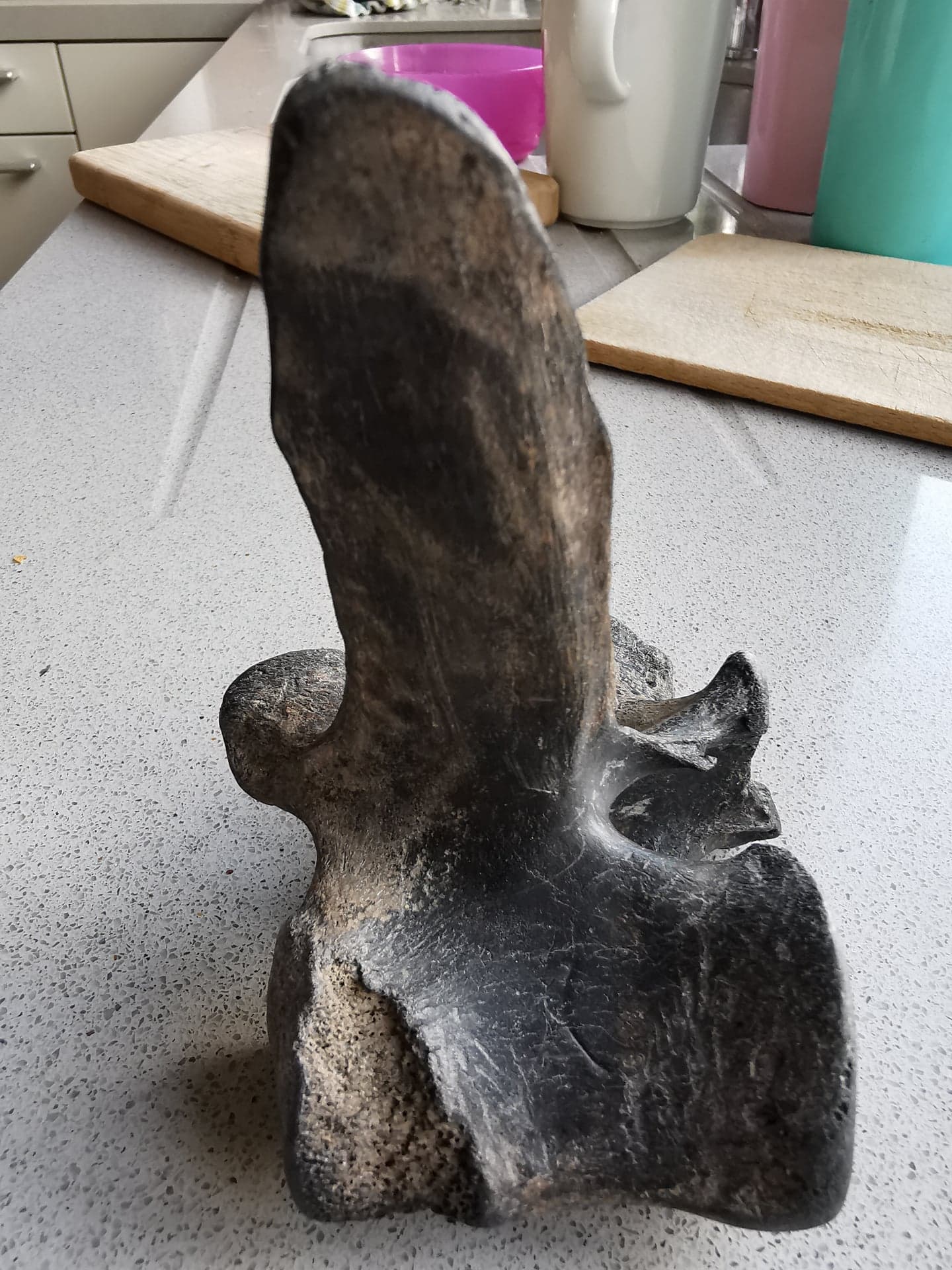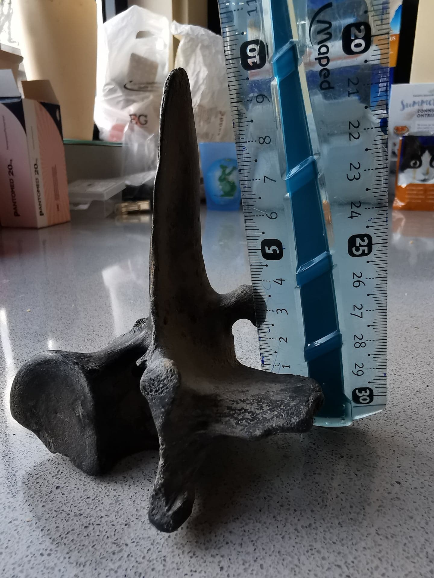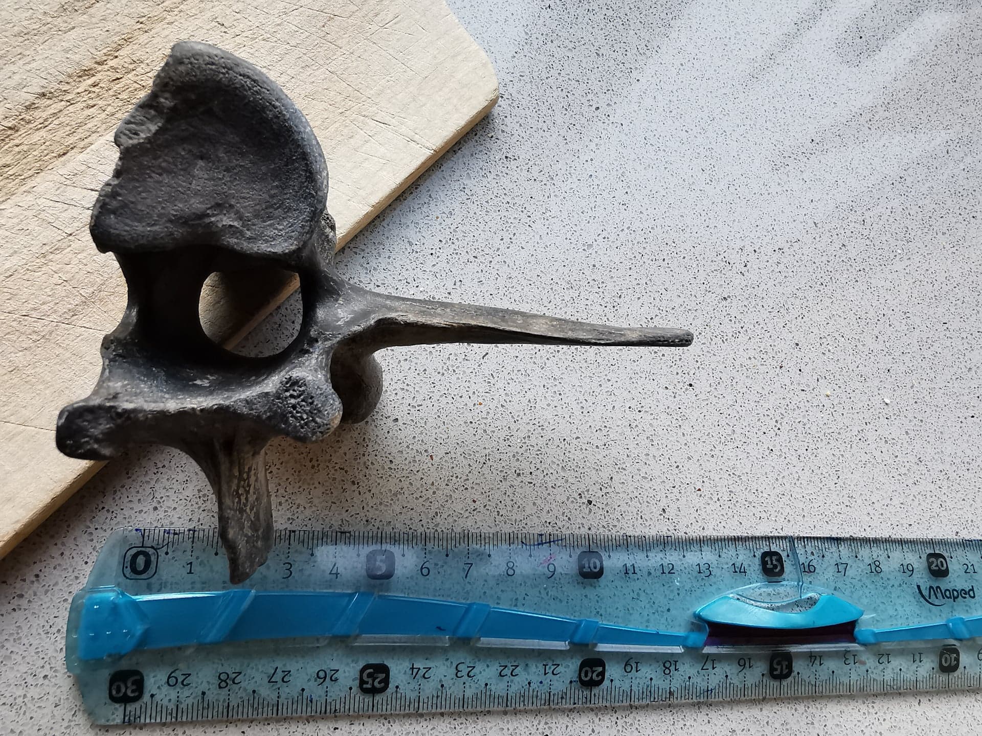 Dit vonden we aan de Noordzee. Lijkt me een wervel van iets maar is redelijk groot.