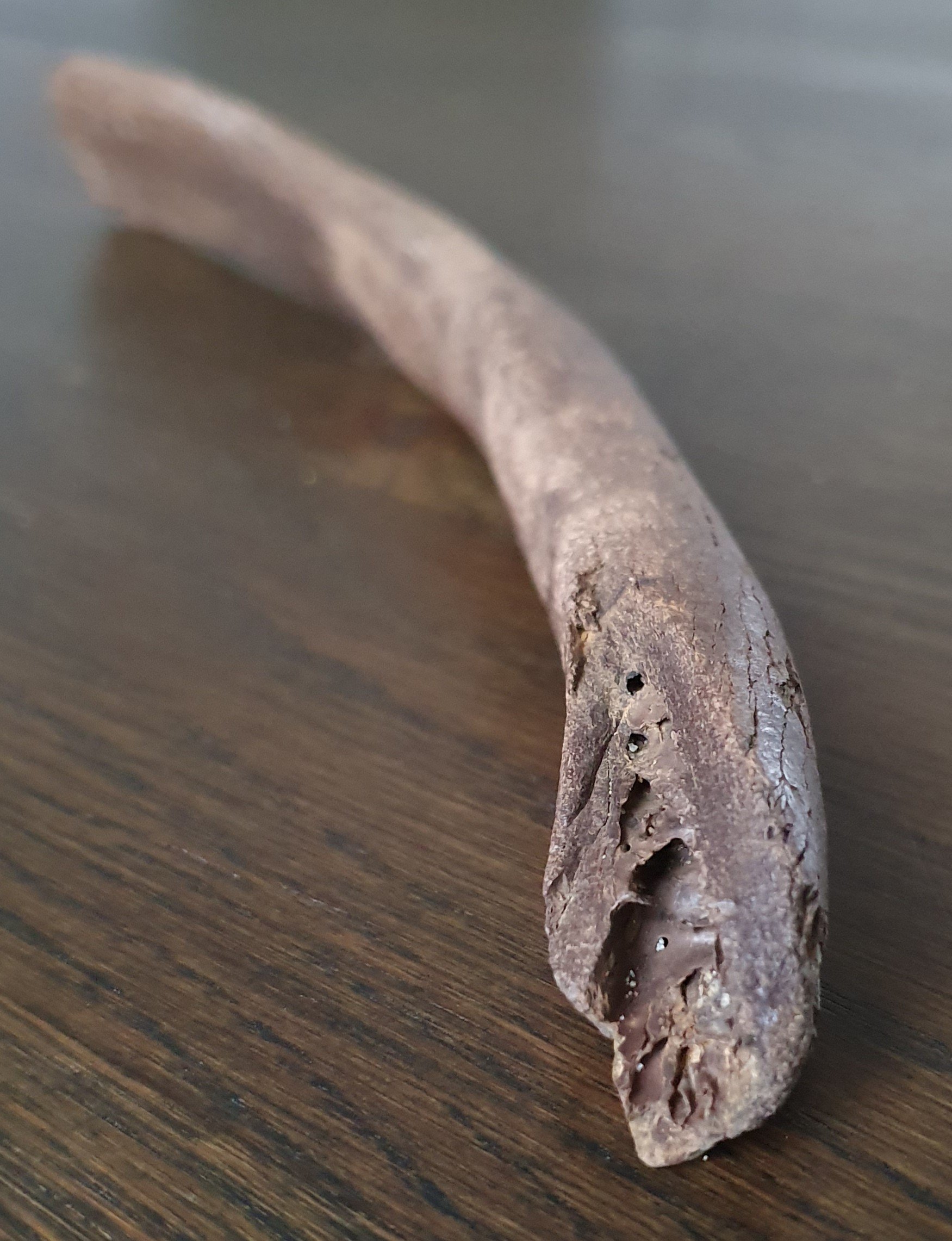 "Voor zover ik het van de foto’s kan beoordelen zou hier sprake kunnen zijn van een fraai genezen breuk. Als ze zo mooi genezen zijn is er veelal sprake van een zogenoemde ‘greenstick fractuur’, een botbreuk, meestal, op jonge leeftijd waarbij het gebroken bot vast zit binnen het nog jonge beenvlies, zoals als je een jonge twijg breekt de kern breekt maar de schors niet. Vandaar greenstick fracture."