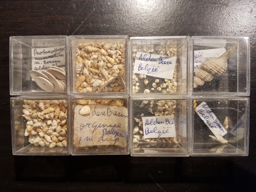set kleine fossielen (gastropoden en bivalven) van onbekende ouderdom uit Alden Biesen, België