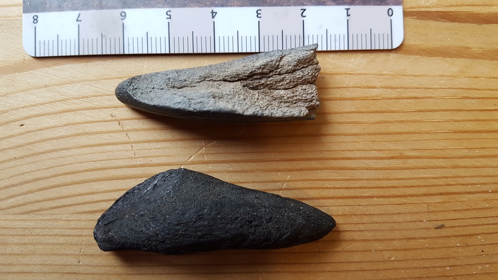 Onderste is een cleithrum, kieuwboog van een vis.