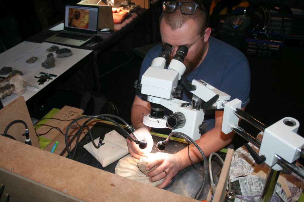 TRILOLAB zal zoals gebruikelijk aanwezig zijn met een preparatiedemo. Hier kan je terecht voor al je vragen rond de mechanische preparatie van fossielen: van hoe je een luchtdruksysteem opbouwt en uitrust met pneumatische beitels en zandstralers, tot onderhoud, tot het gebruik van lijmen, en ga zo maar door. Bovendien kan je letterlijk over de schouder meekijken en een live preparatie volgen.