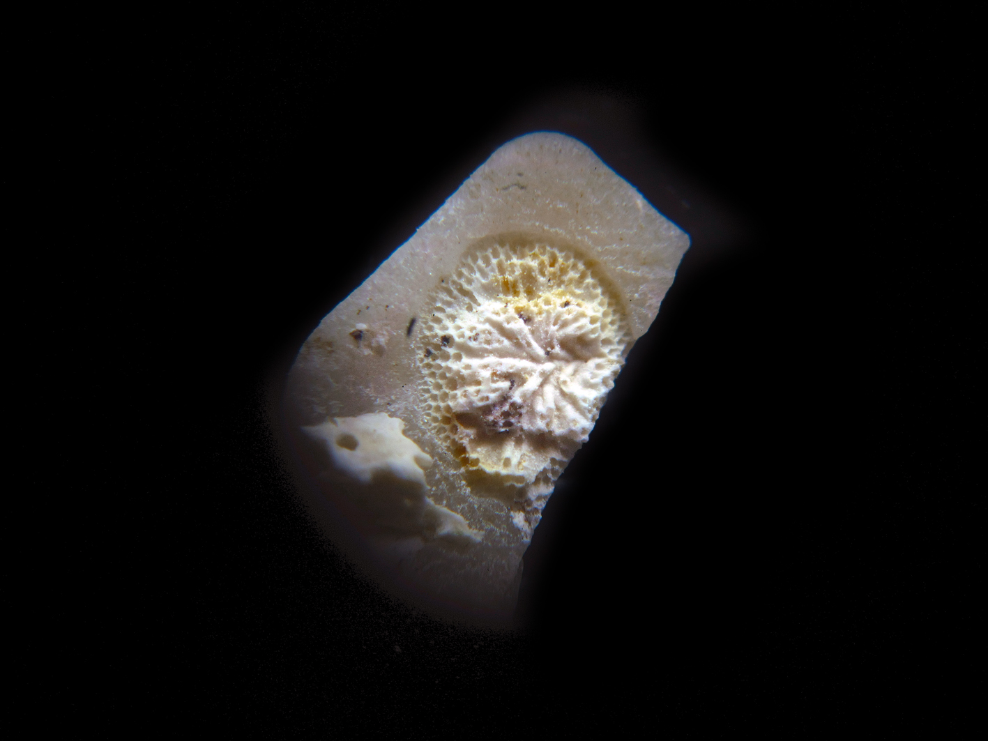 de kolonie heen? En waarom groeien de calciet kristallen, uit die de fossiele bryozoa zelf bestaan,