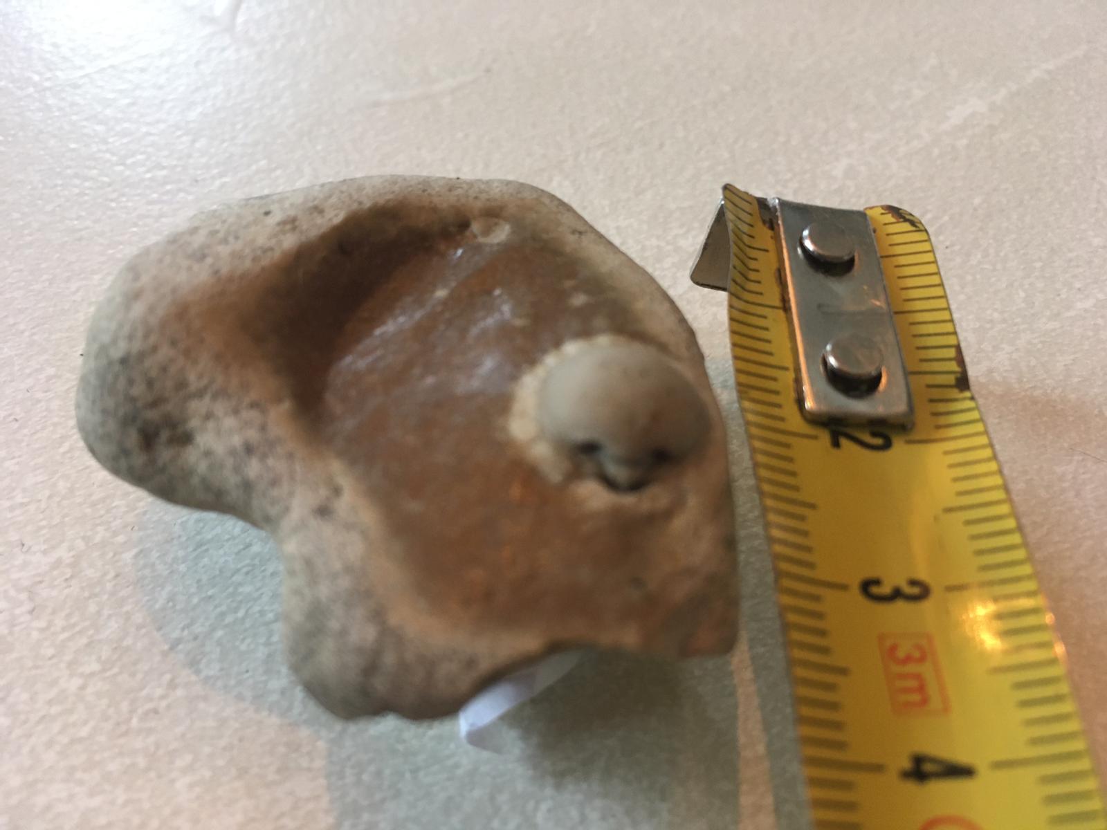 Onlangs vond mijn vriendin op het kiezelpad deze kiezel. Bij beter kijken ontdekte we dat het waarschijnlijk een kopje van een dier is. Of? Maar wat is het dan?