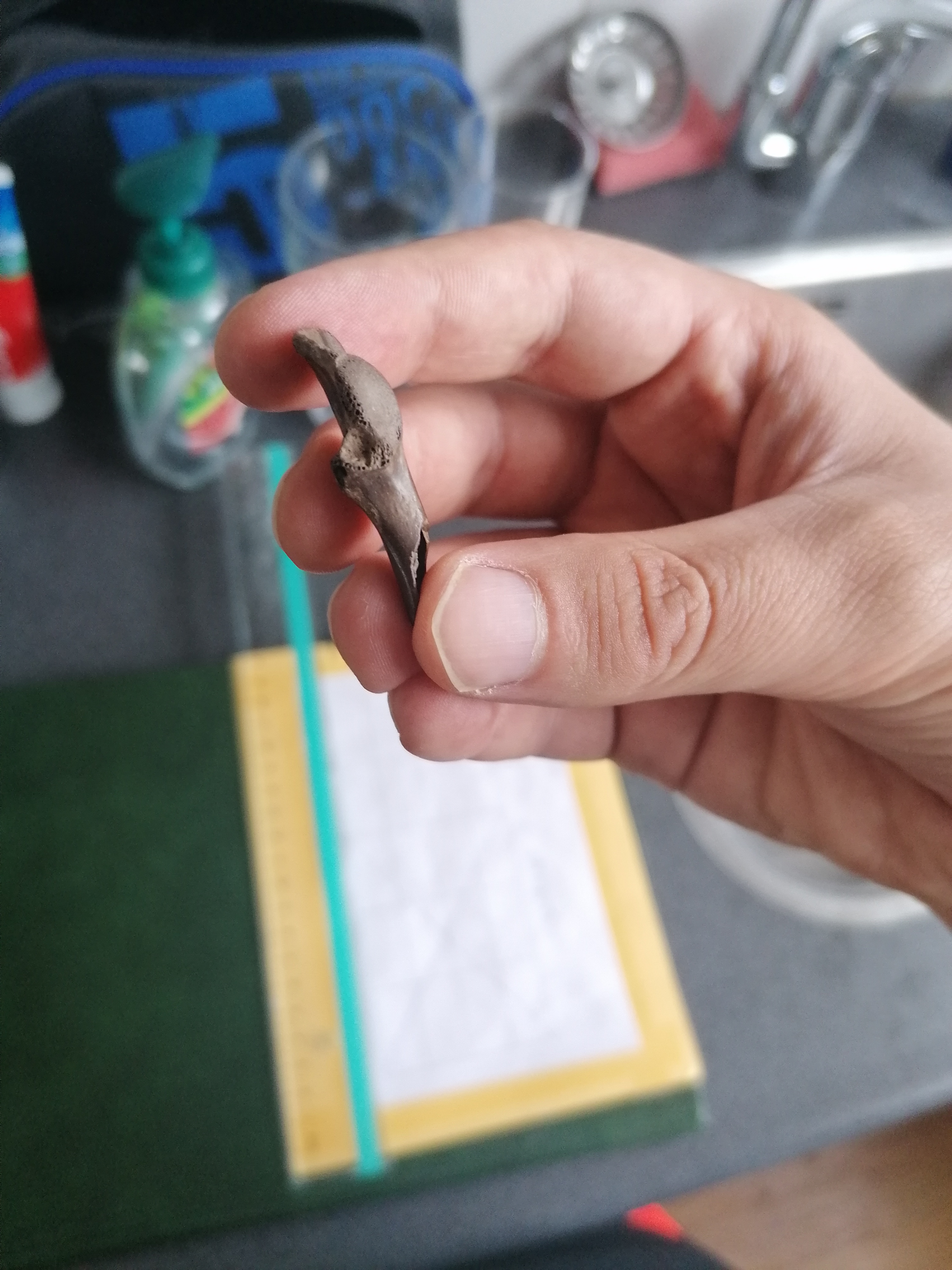 Dit botje heb ik een paar maanden terug gevonden op de 2e maasvlakte, dat het vogel is weet ik al door het feit dat het botje hol is en erg lichtgewicht. Mijn vraag is dus welke positie van het skelet dit botje bezet? Soort vogel durf ik niet te vragen, ouderdom denk ik laat-pleistoceen/vroeg-holoceen?
