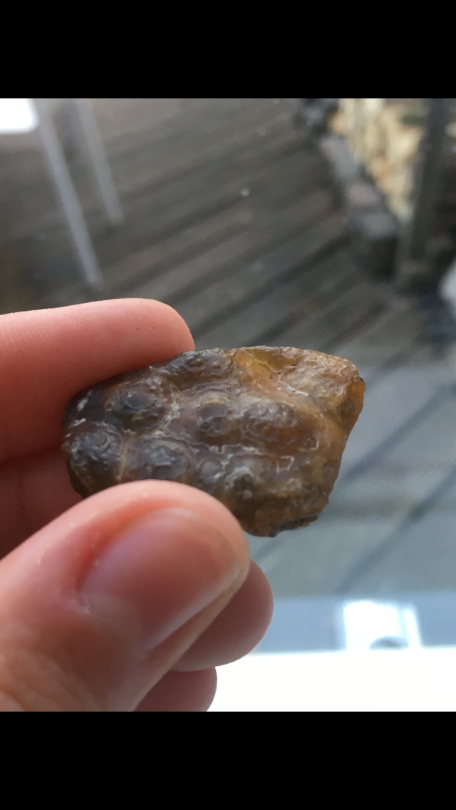 Gisteren vond ik tijdens het zoeken naar vuurstenen artefacten bij Mander deze steen. Hij viel vooral op door de bijzondere vormen, dus ik ben benieuwd door welke natuurlijke processen de steen zo gevormd zou kunnen zijn. Ook het steentype is me niet duidelijk. Het is licht bruingeel en zo doorzichtig dat het barnsteen zou kunnen zijn, maar wellicht ook wel gewoon vuursteen? Het zou leuk zijn als iemand zijn licht hier op zou kunnen laten schijnen.