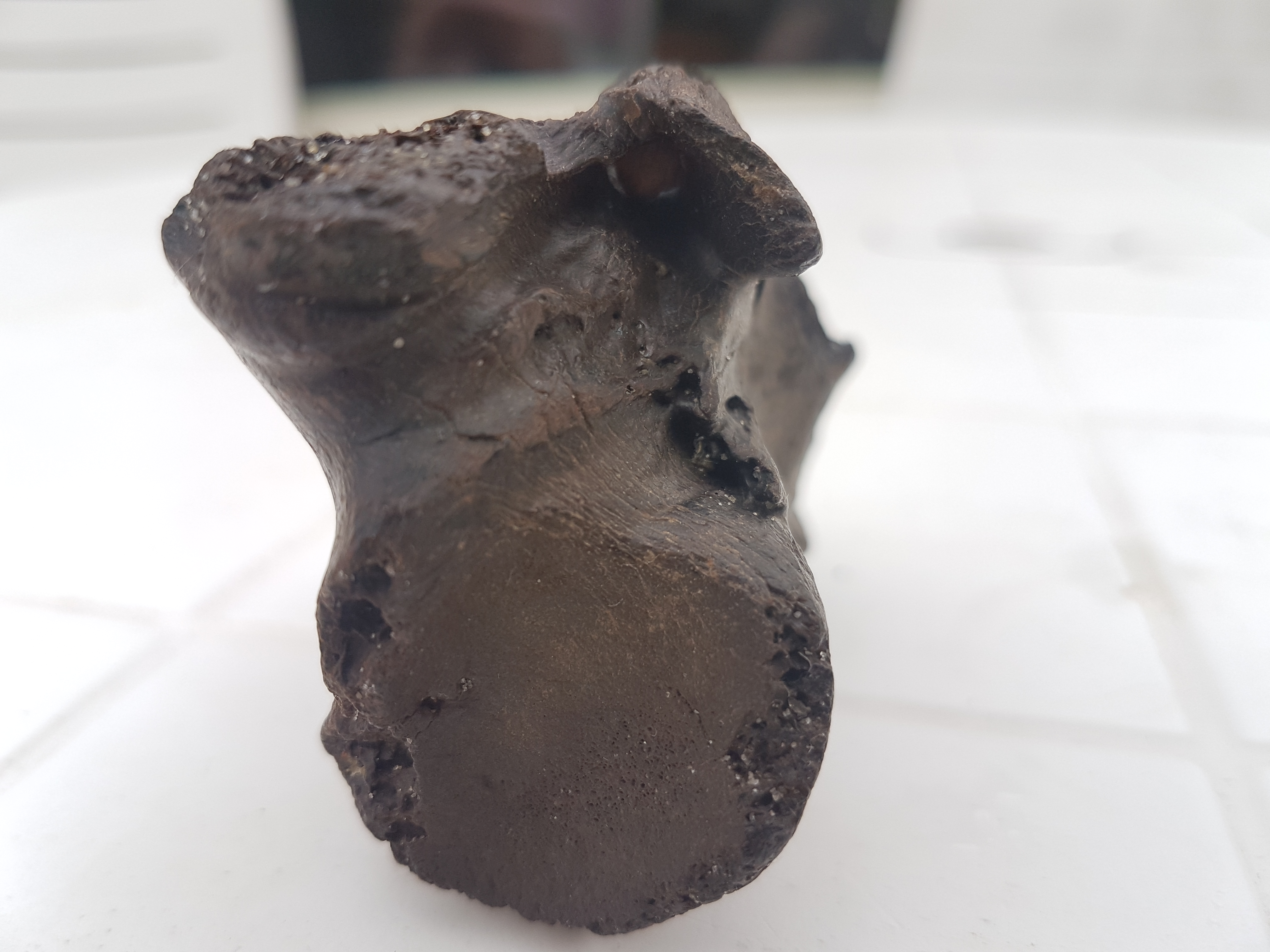 Een schedelfragment. Dit zit aan de onderzijde, vlakbij de opening van het ruggenmerg kanaal. Wat betreft de diersoort durf ik niets te zeggen.