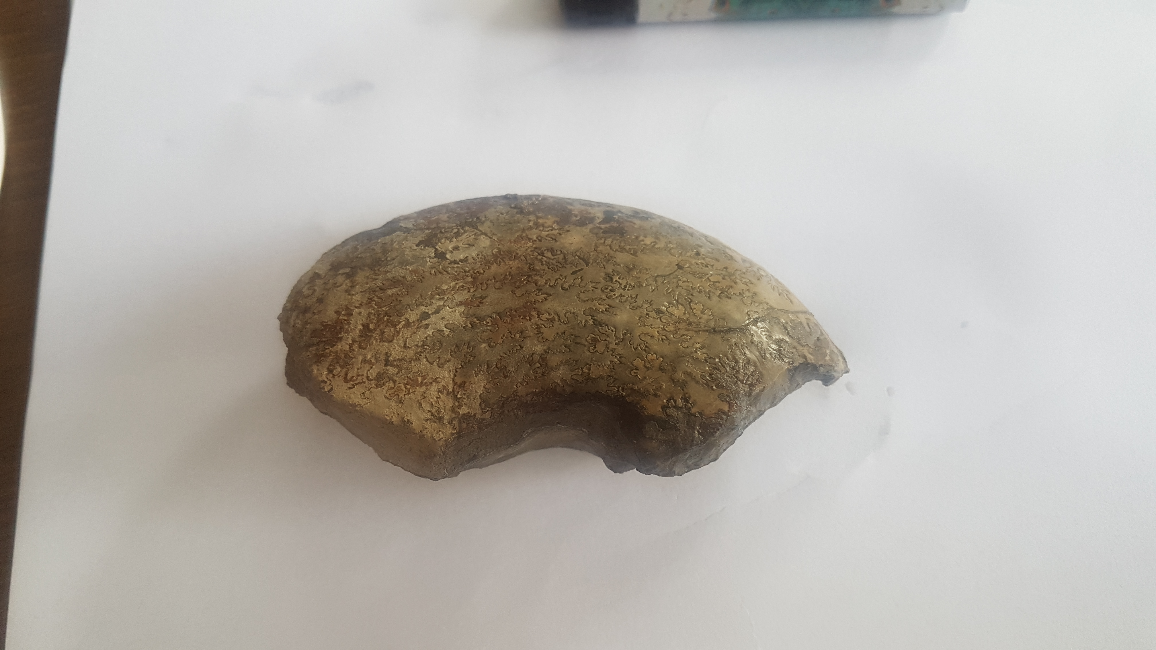 Zou dit een klauw/nagel van een dino kunnen zijn. Zat in dezelfde laag waar ook de ammonieten gevonden waren.