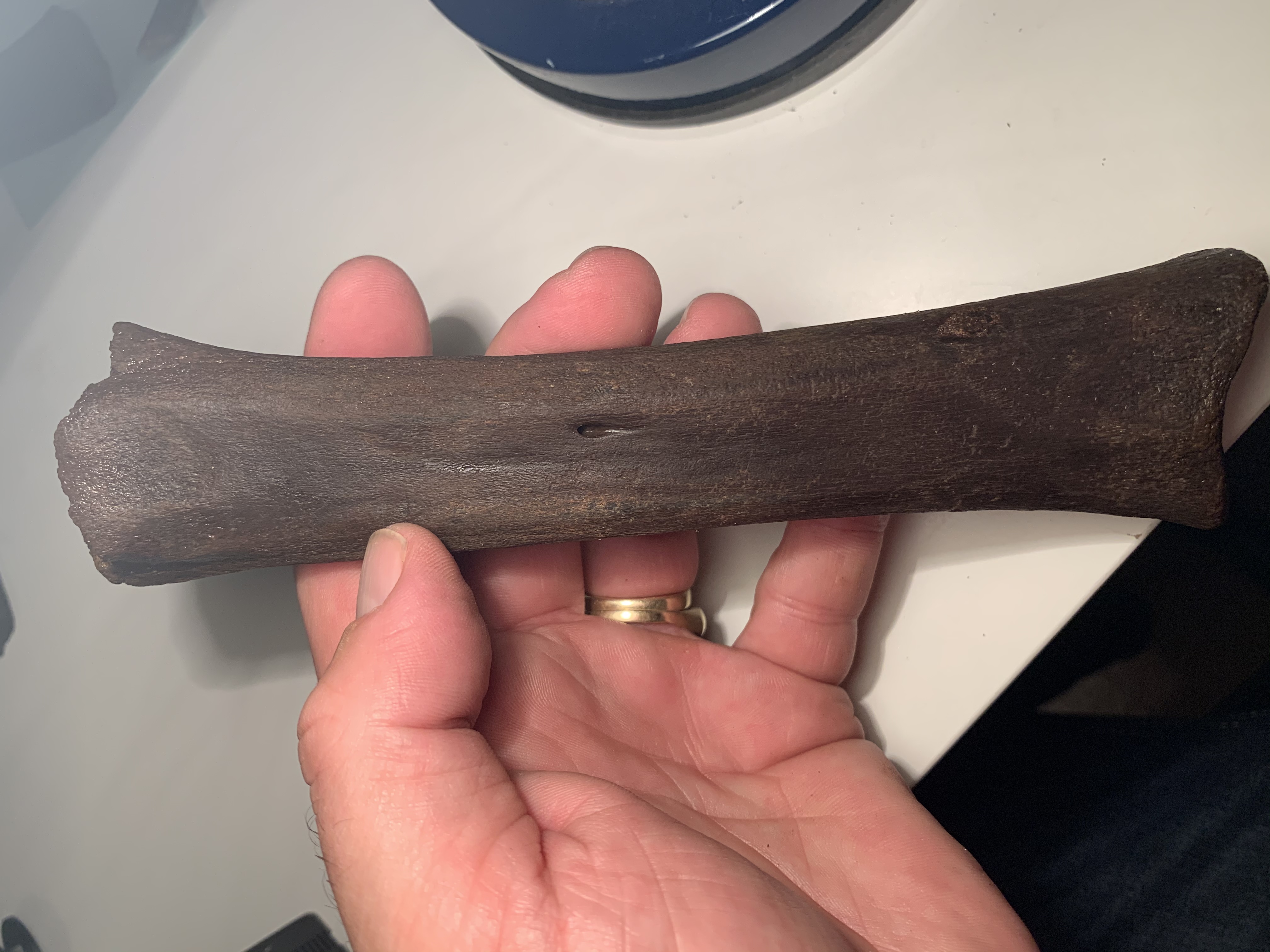 Mooi bijna compleet en zwaar bot van 18 cm. Wat is het voor een bot en dan welk zoogdier kan dit zijn? Strandvondst zandmotor.