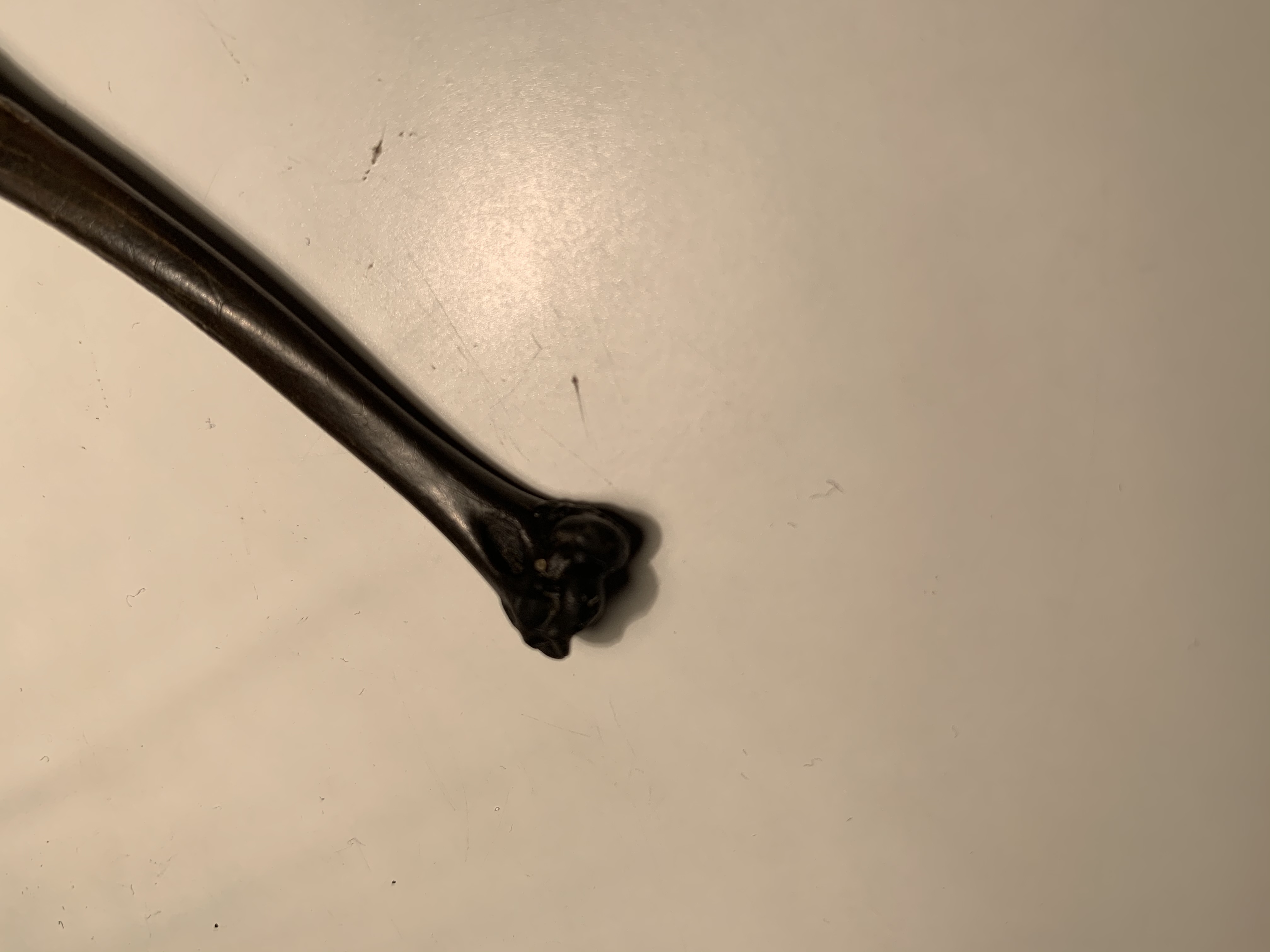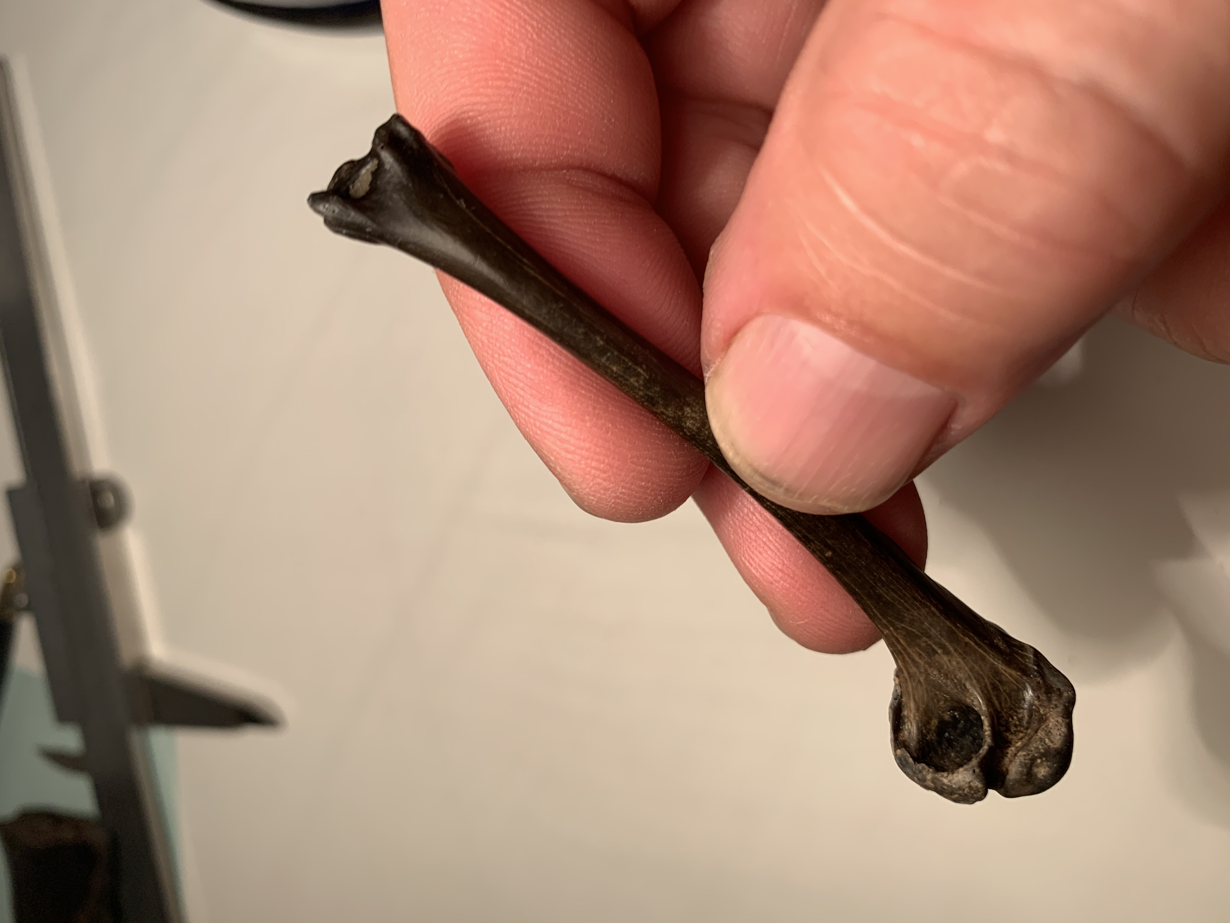 Mooie vondst van een heel fijn zwart gepatineerd botje. Iemand een idee waarvan , zoogdier of vogel? Vindplaats zandmotor