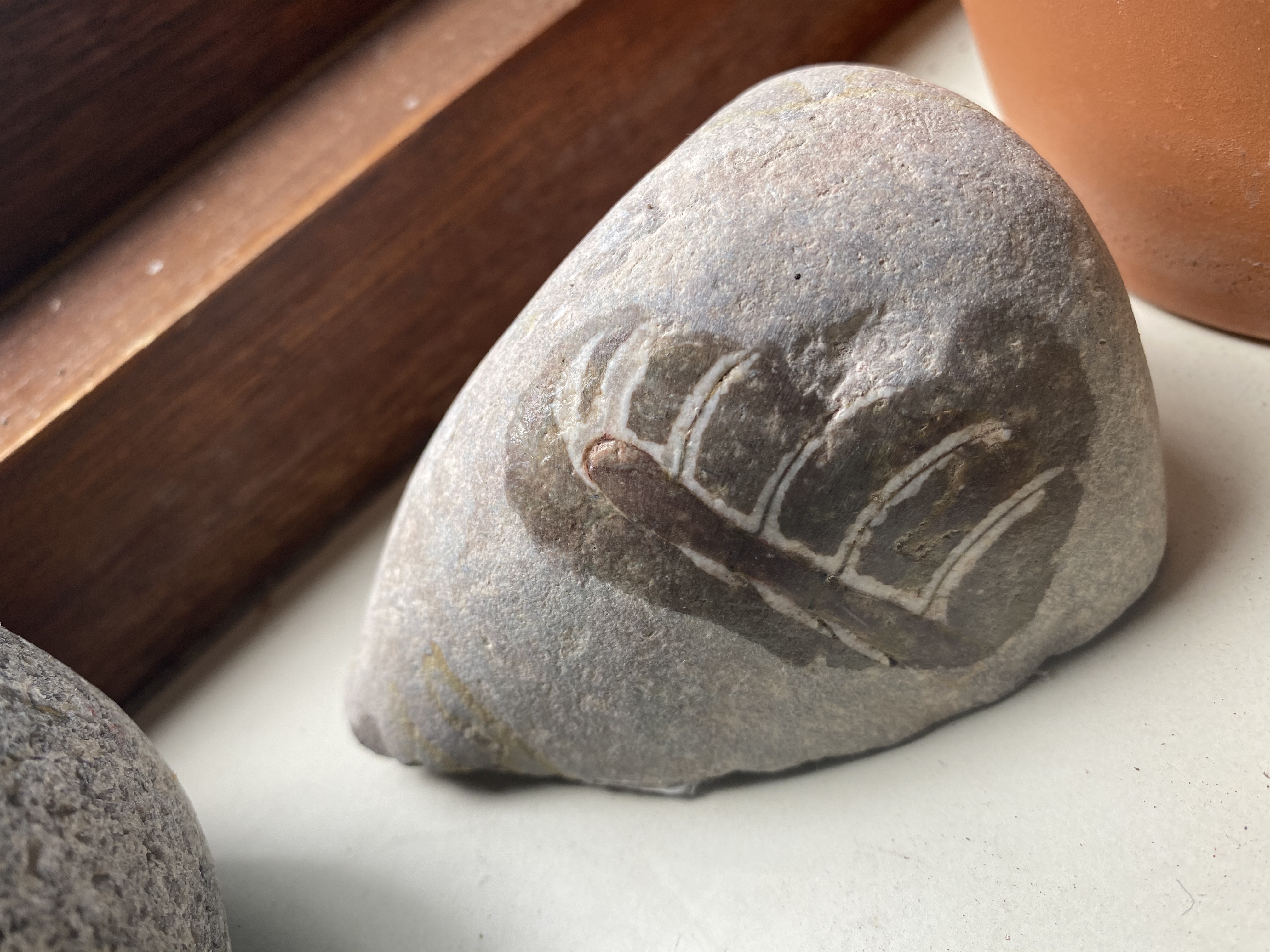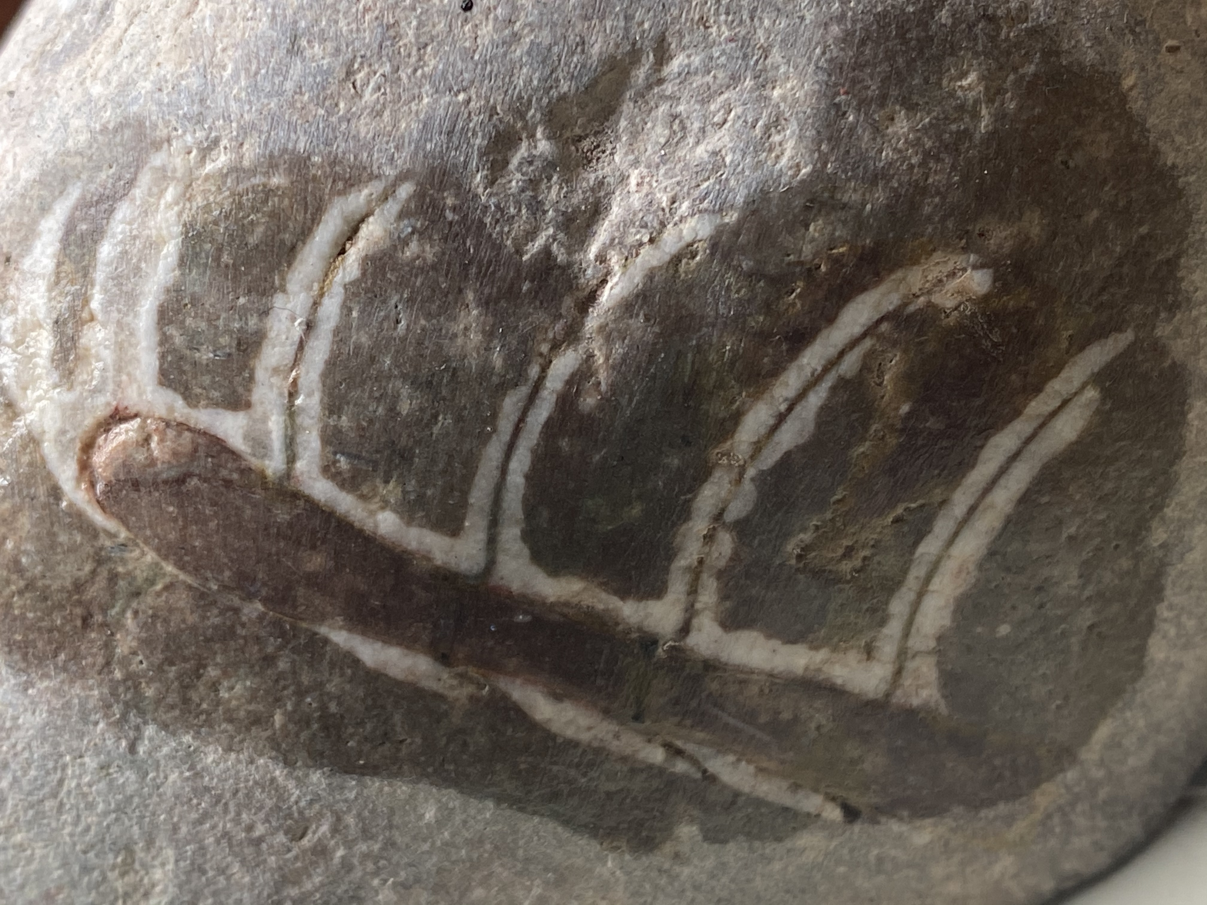 Heb deze gevonden op Oland en geen idee wat het is. De steen voor de foto even natgemaakt voor het betere contrast. De steen als geheel meet 10 bij 10 cm.