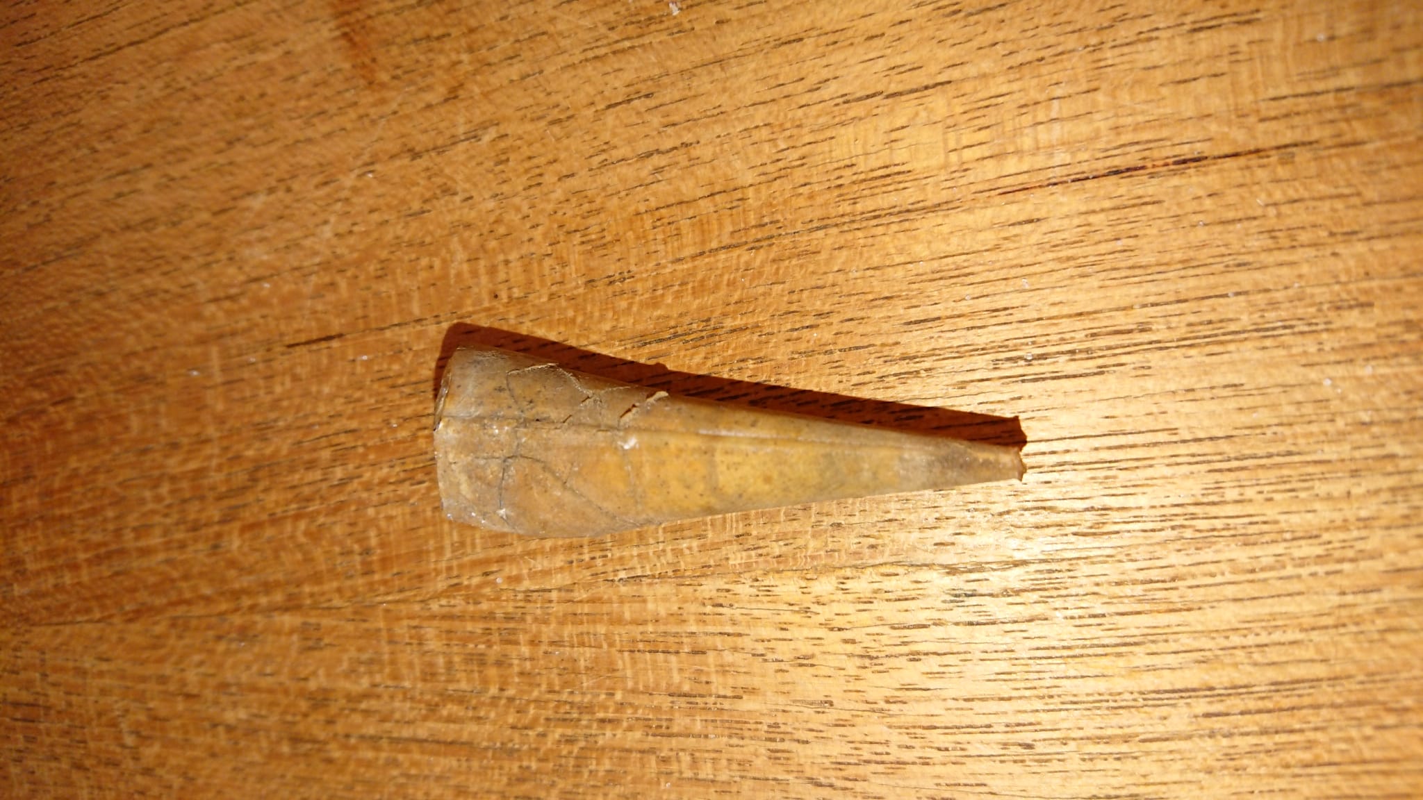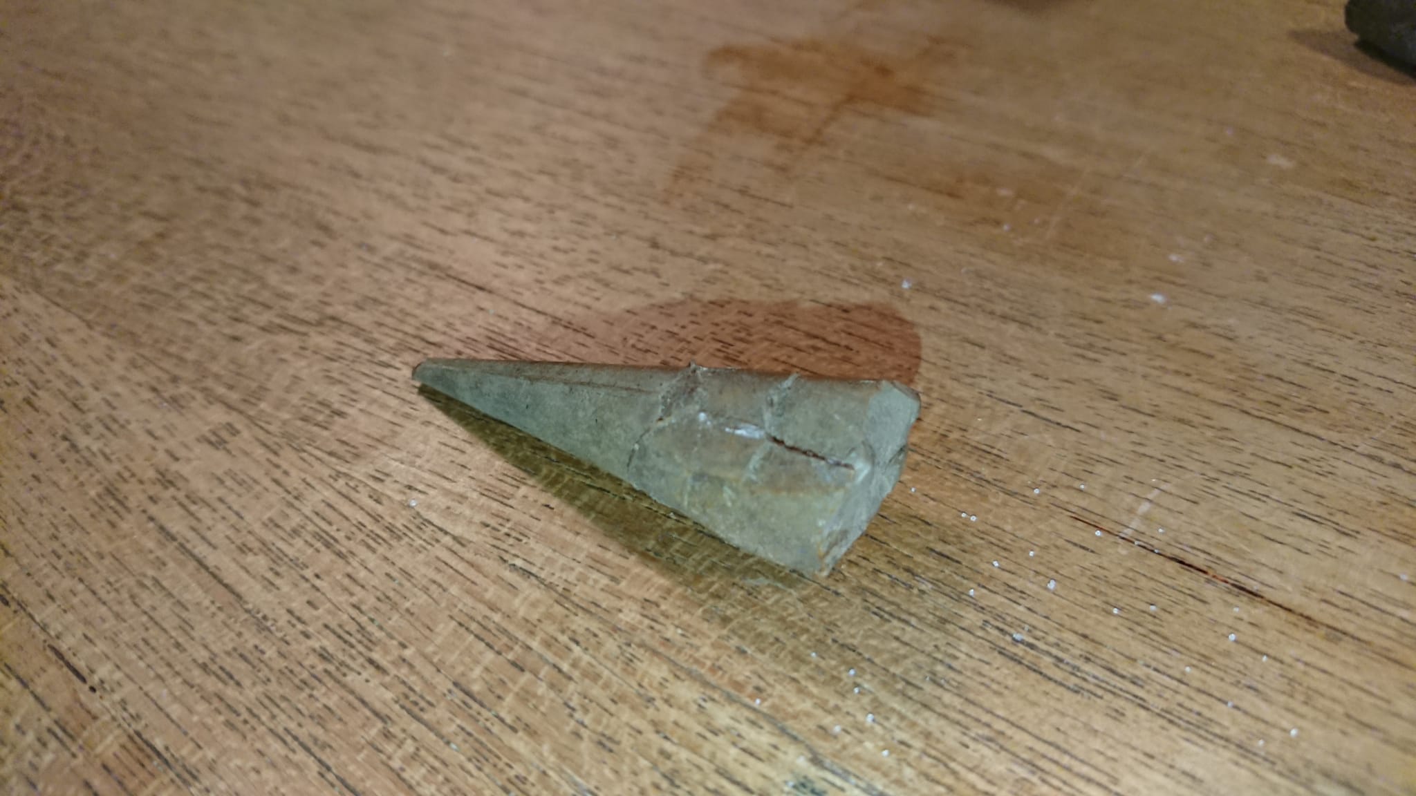 Ik vraag het mij toch af... Het 'puntje is namelijk niet glad aan de buitenkant, je zou er bijna schubben in kunnen zien. De voorbeelden die ik zie van Belemnieten zijn duidelijk anders, eerder een bijna concave vorm.