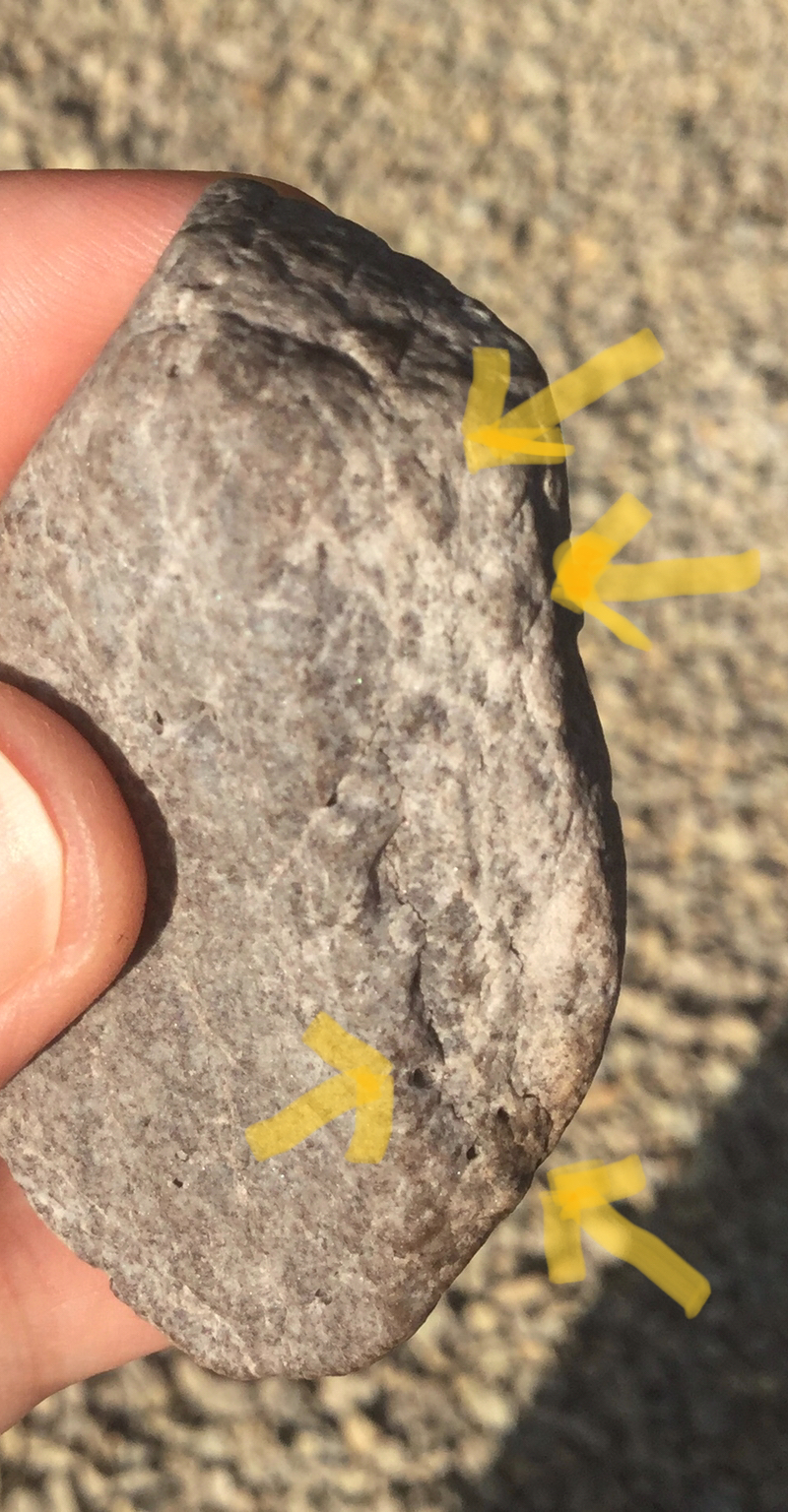De zijkant vertoont een structuur parallel aan het “ding”.