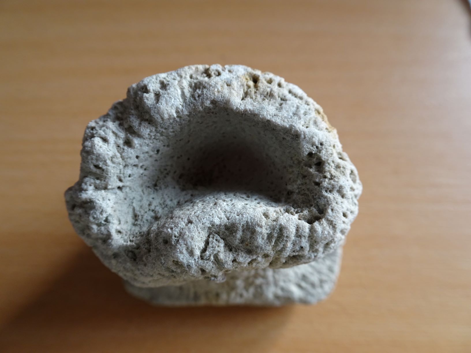 Hierbij een paar foto's van een mooie vondst van een paar dagen fossielen zoeken in het zgn. WWW-gebied (NO-Twente en aangrenzend Duitsland). Een beker van Rhizopoterion (neem ik aan), een spons uit de Krijt-periode. Ik ben er blij mee.