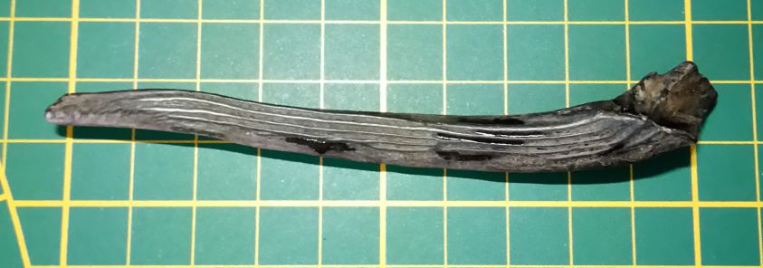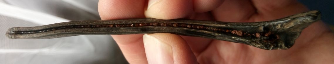 hallo allemaal, onlangs op de zm dit stuk bot gevonden, in eerste instantie dacht ik aan een rib die gespleten was, maar thuis gekomen en beter bekeken, denk ik dat ik een baculum heb gevonden, alleen ik kan hem niet plaatsen bij het dier. De lengte is ca 10,5 cm en de vorm komt denk ik nog het meest in de buurt van die van een hond. Wat denken jullie, is dit een baculum en iemand enig idee van welk dier?