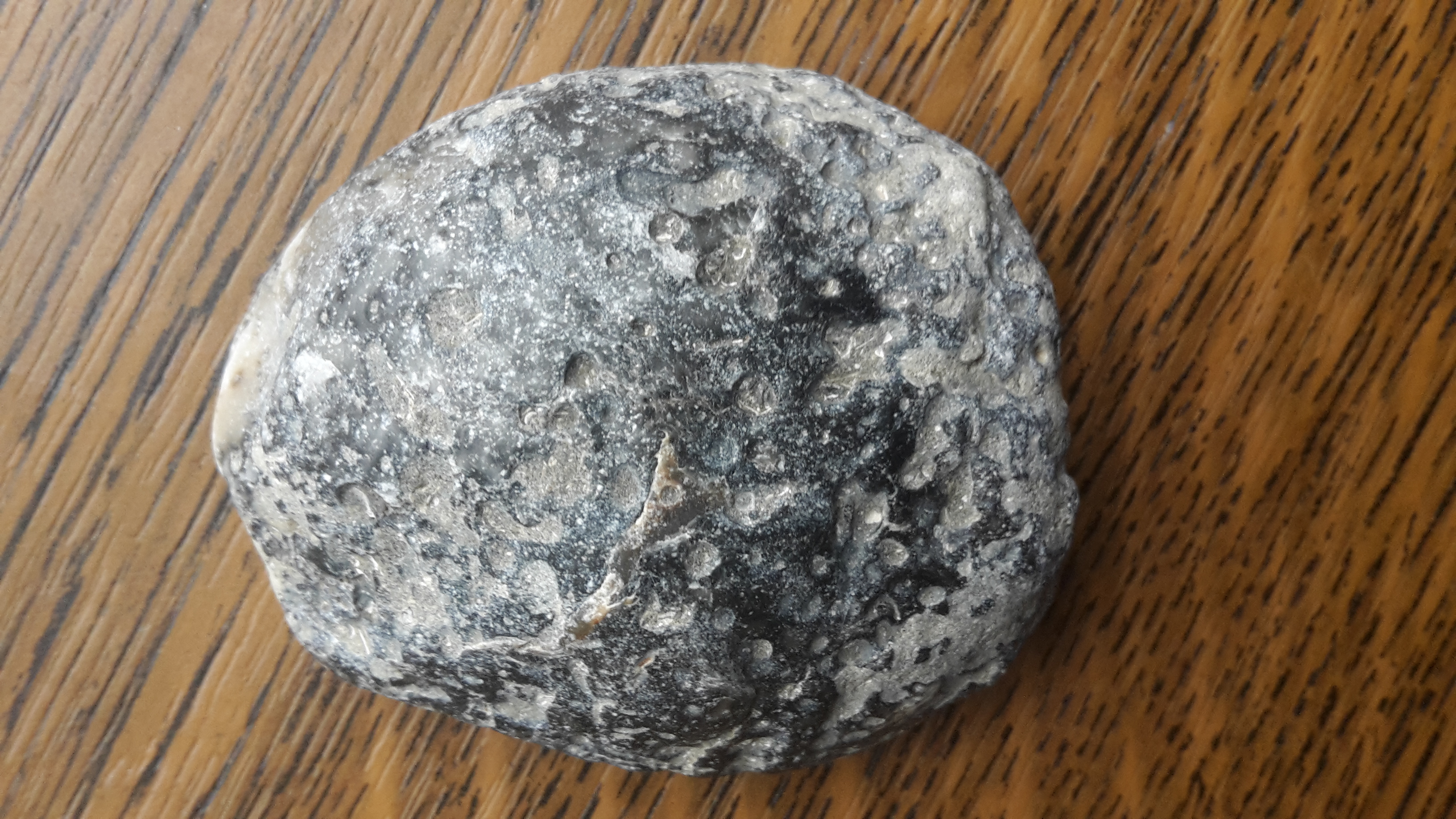Vanmorgen heb ik dit stuk van 6 cm van het MV strand opgeraapt. Het stuk is zo zwaar als een steen van dat formaat.