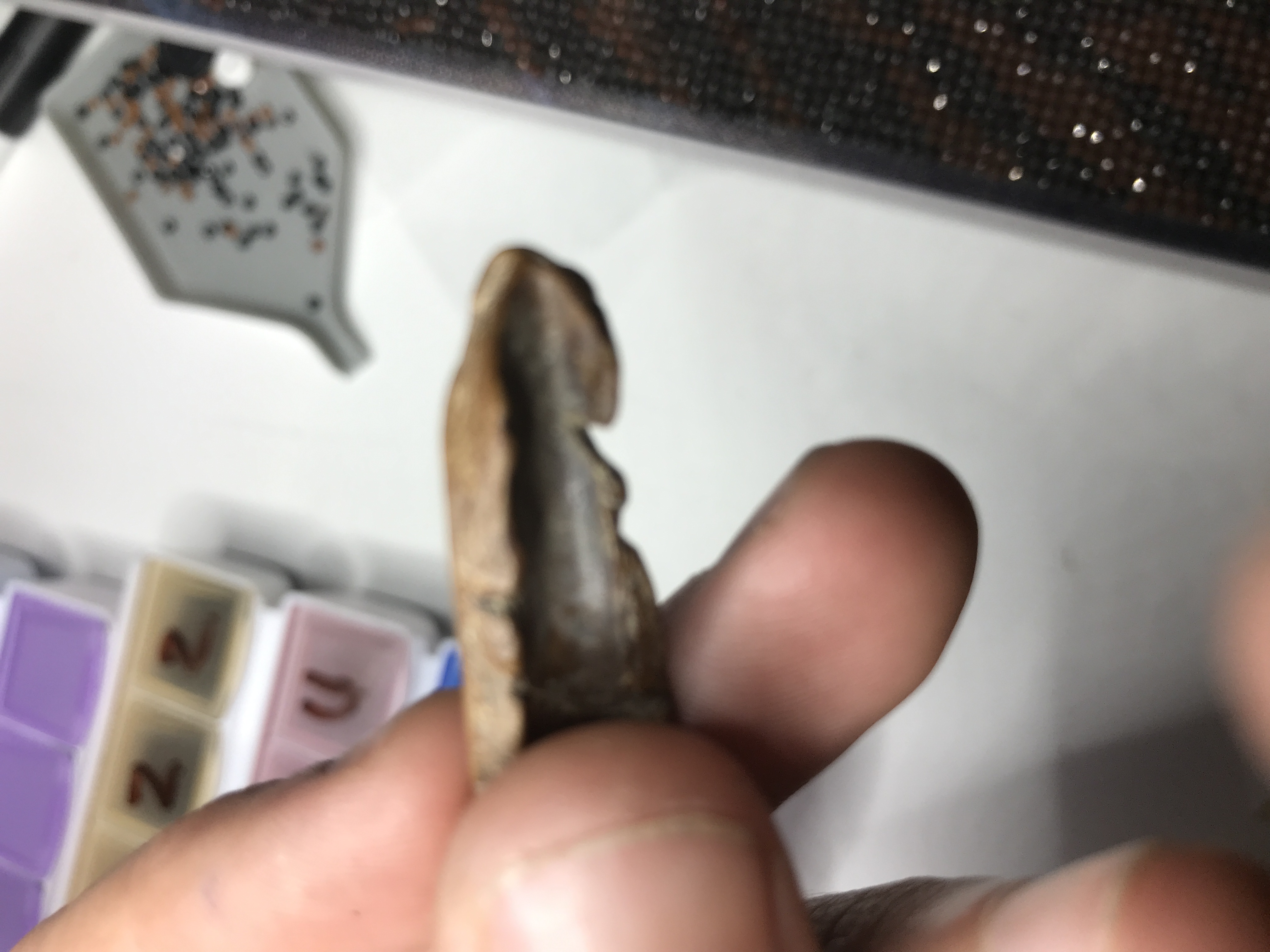 deze vorm en hol kan voor kootjes, ik snap je idee, gezien het iet wat ronde uiteinde, maar het is een fragment en het wordt lastig om te determineren. die inhammetjes zijn apart, als die er in geslepen zijn