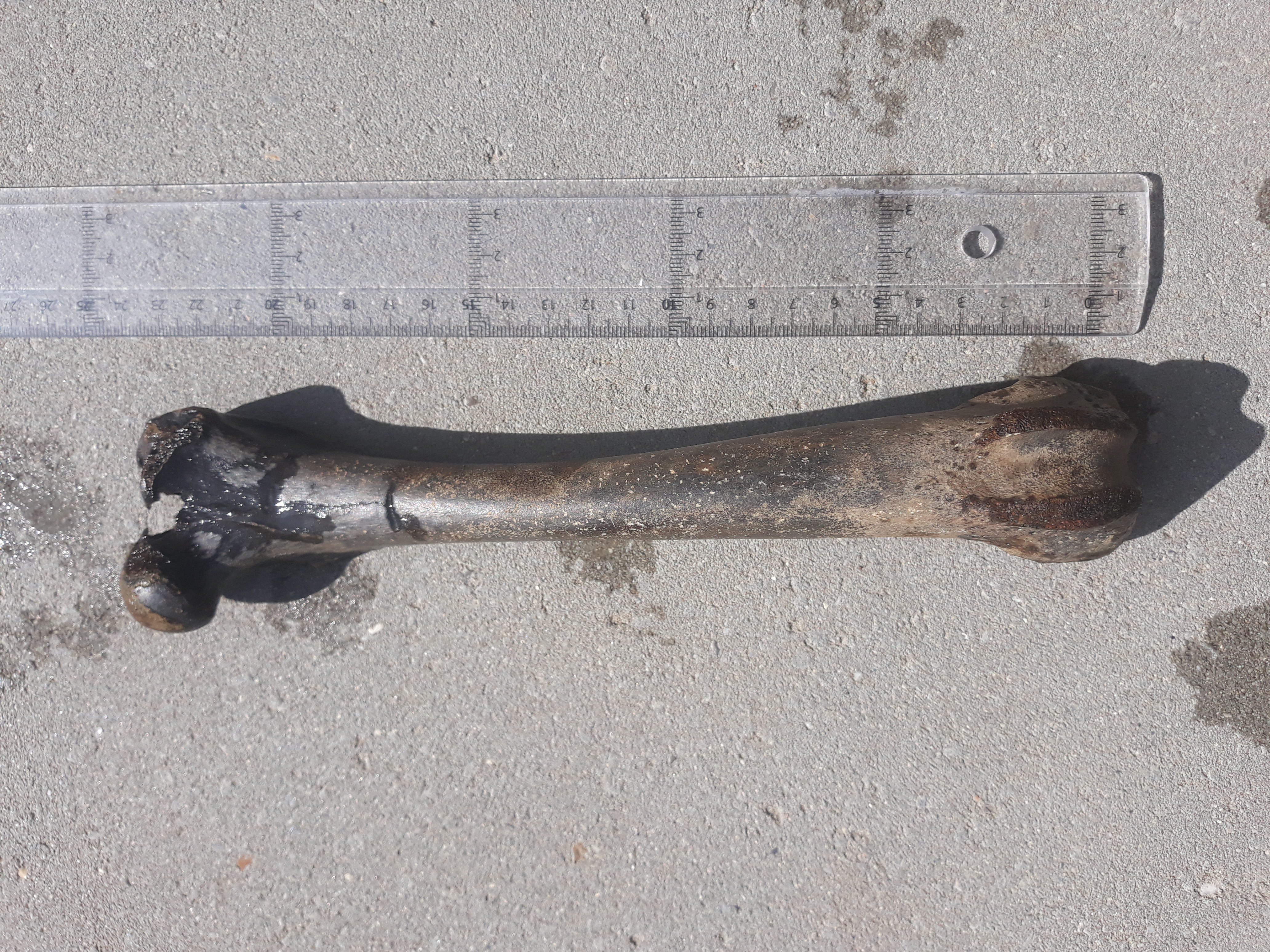 Is dit het dijbeen van een dier? Voor een mens lijkt het mij nogal klein. Gevonden in Antwerpen.