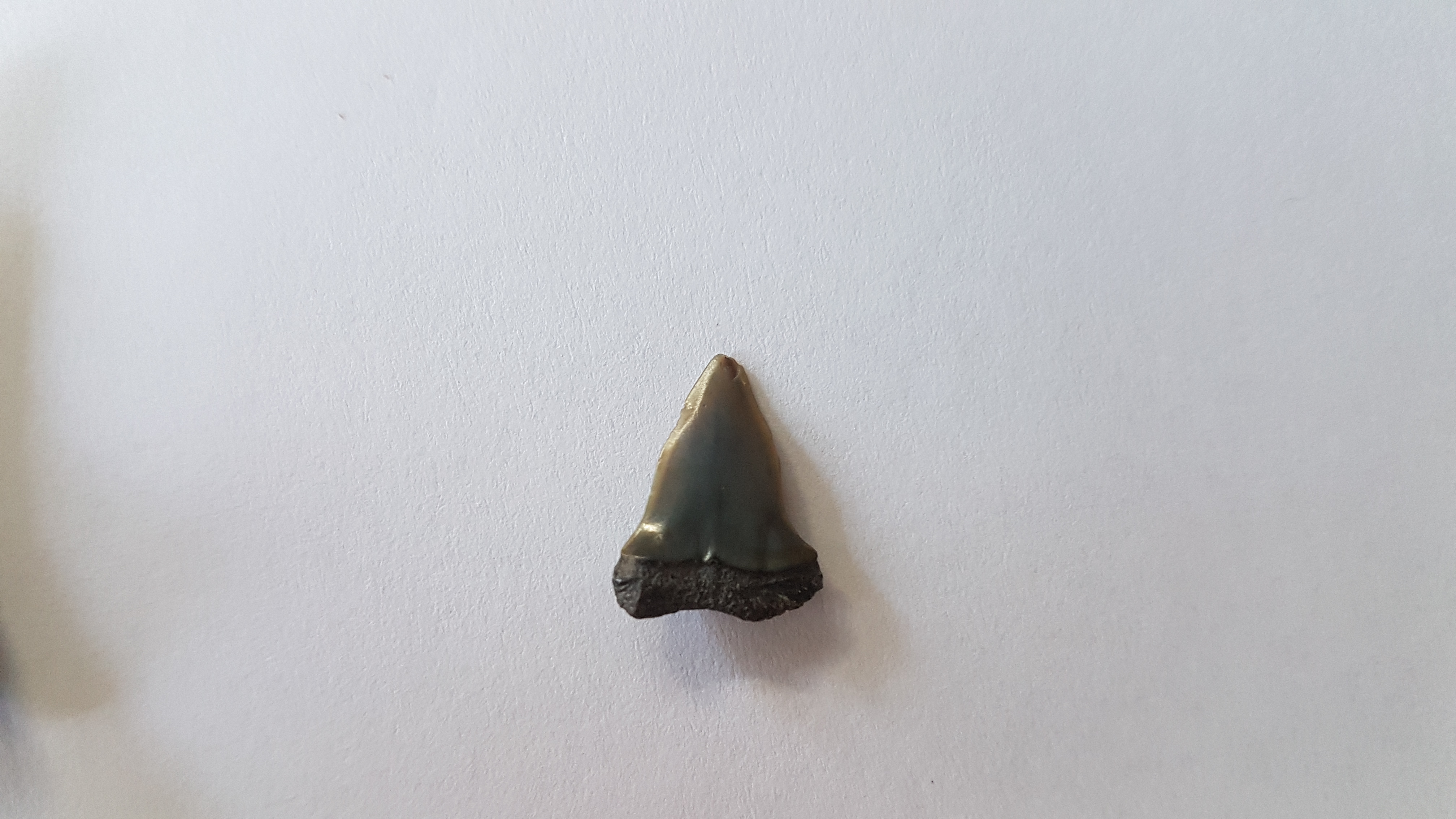 Die linkse is een flinke! Kan er alleen niets van maken dan dat het waarschijnlijk uit het eoceen of oligoceen komt, de rechtse is een cosmopolitodus hastalis van goede kwaliteit, zou ik hier een goede close-up foto van kunnen zien van o.a. De voorkant, maar ook de achterkant? De voorkant is de platte zijde en de achterkant is de bolle zijde.