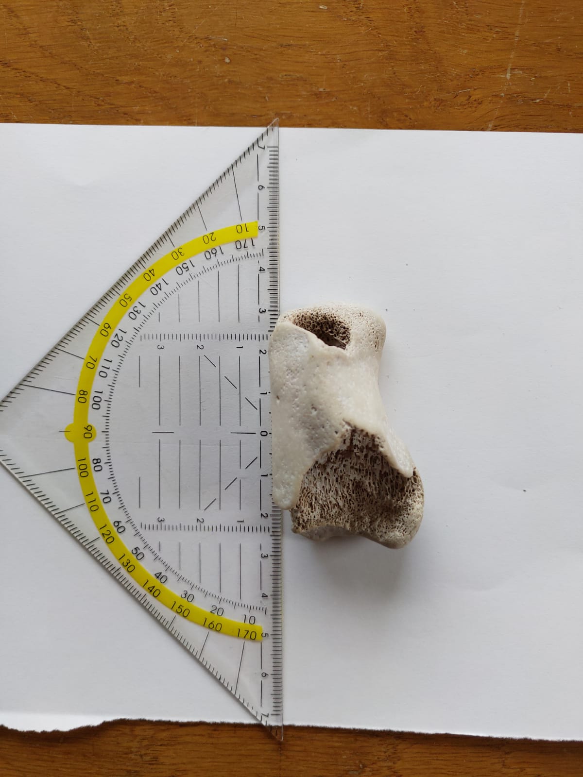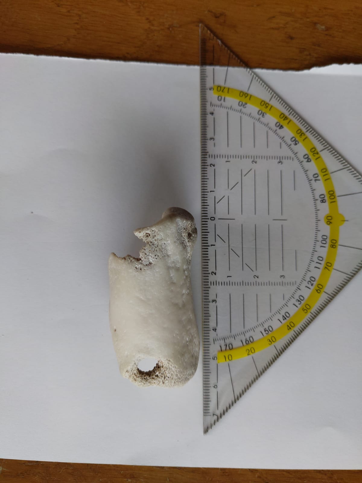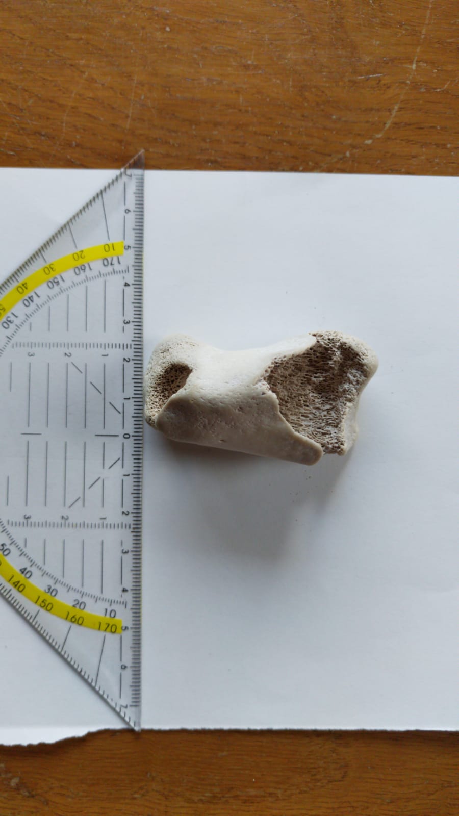 Het bot is ongeveer 6 cm lang en 3 cm breed.