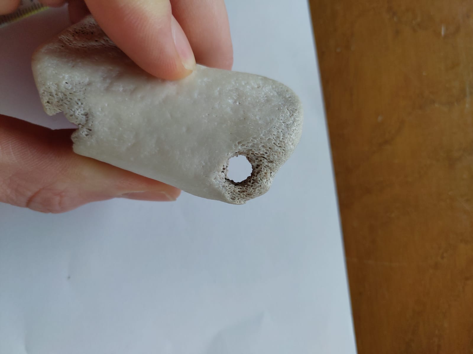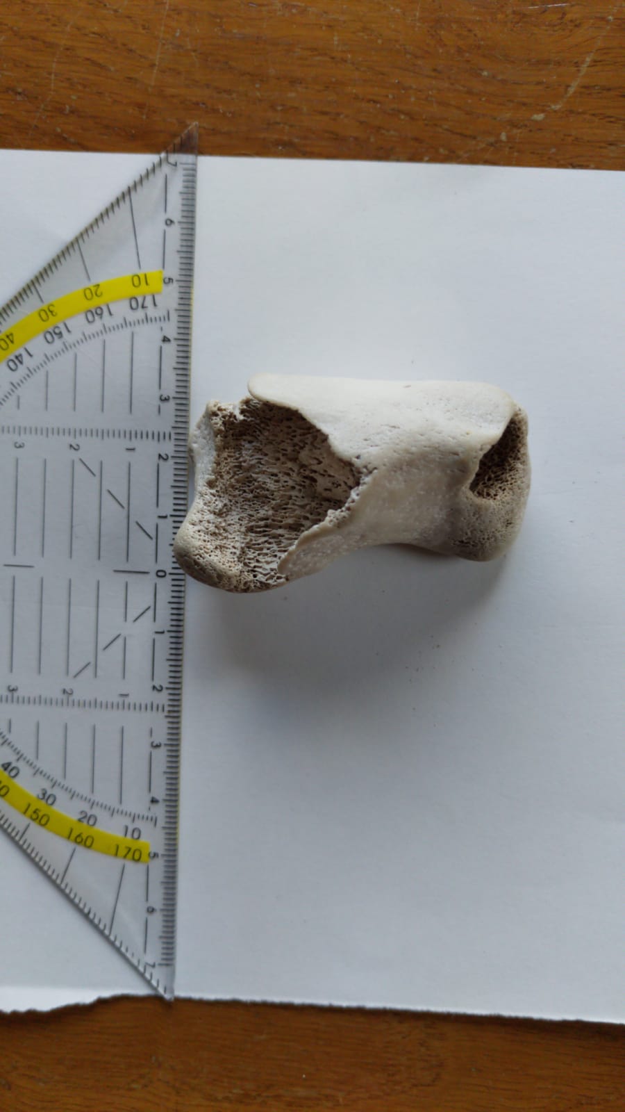 Opvallend vind ik zelf dat het bot spierwit is en glad als een kiezel. Weet iemand hoe dit kan? De meeste botten op dit forum zijn bruin of zwart.